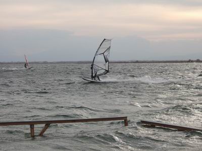 Comme évoqué dans un article précédent, ça glissait aussi bien en mer que sur étang où l’on croise de plus en plus de matériel 2008. La preuve par Lilian qui a pu profiter du coup de marin en 4,2 Gunsails Hammer faute d’avoir reçu sa nouvelle 5,2 m2 de slalom. La prochaine fois, le quiver sera complet et des retours sur impressions devraient suivre.