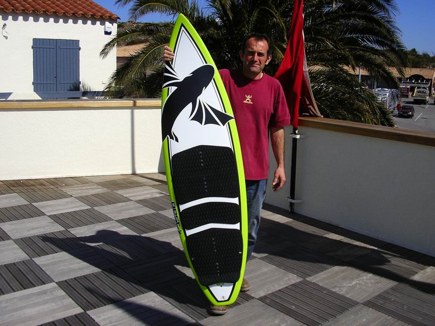 La 5,7′ est d’ailleurs en test mais les conditions du jour n’ont pas permis de se faire un avis. Il semble déjà que le produit soit plutôt bien conçu avec un équipement de qualité ( straps, grands pads,…), une construction sandwich PVC légère et rigide avec une superbe finition et une déco sympa. A suivre …..