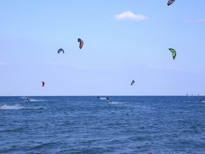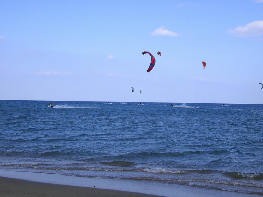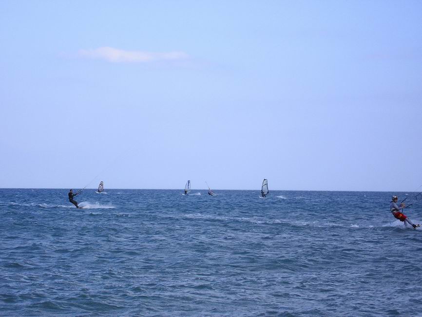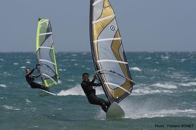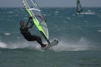 Les windsurfers étaient surtout présent en première partie de journée, lorsque le vent était fort. Parmi eux, Totof sur ses nouveaux protos, Fred Bonet entre navigation et shooting, Cathy et Nathalie les canetoises, Jean-Mi, Olivier « Freestyle », Tube et des habitués du spot qui ont profité du pessimisme de Météo France et de la fraîcheur plus marquée qu’hier.