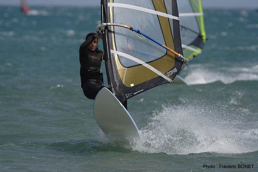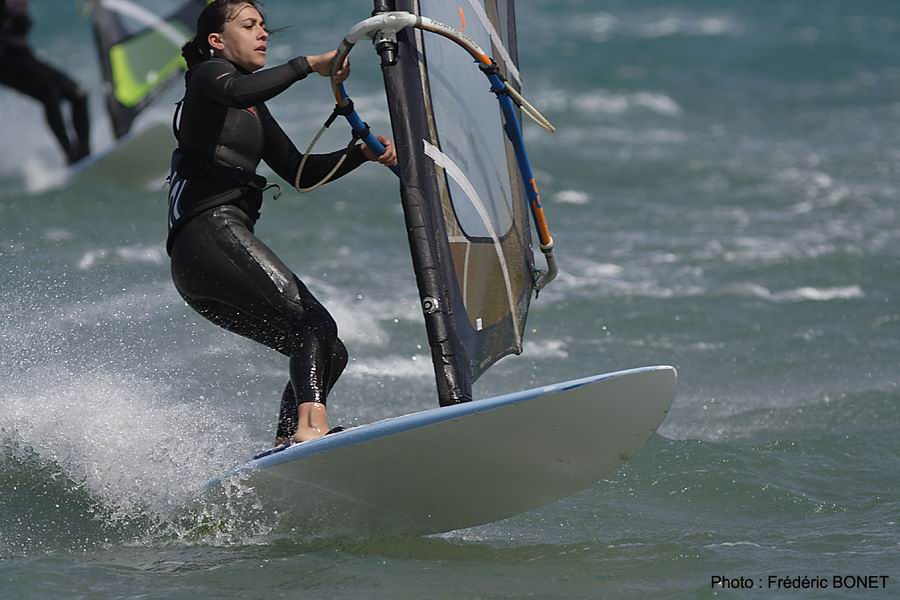 Souvent sur les bons coups de marin du côté de Canet, les girls remontent souvent sur Leucate quand les conditions sont trop faibles sur le Sud. Pas plus de 4,7 m2 dans le quiver, ça selectionne les sessions…