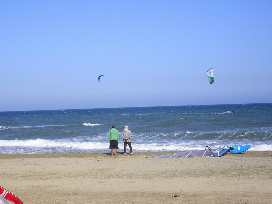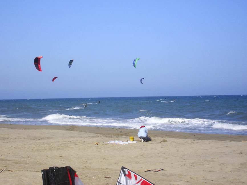 Arrivé sur place un peu avant 15 heures, j’ai rejoint des habitués et des vacanciers ridant en kite avec 9/12 m2 et des windsurfers au alentours de 5,7/6 m2 pour les plus à l’aise.