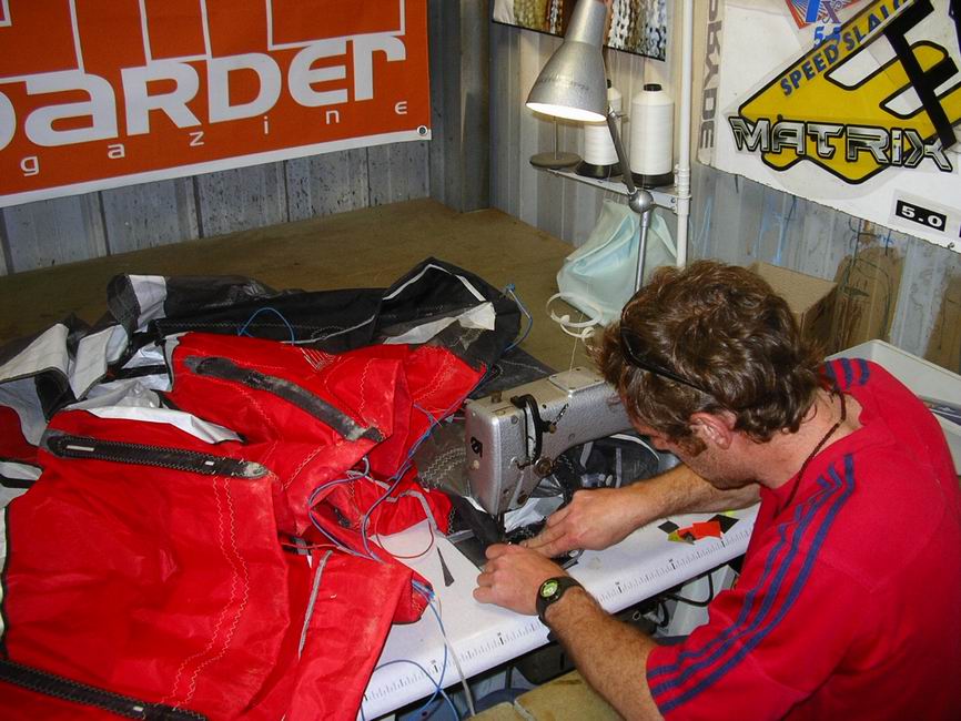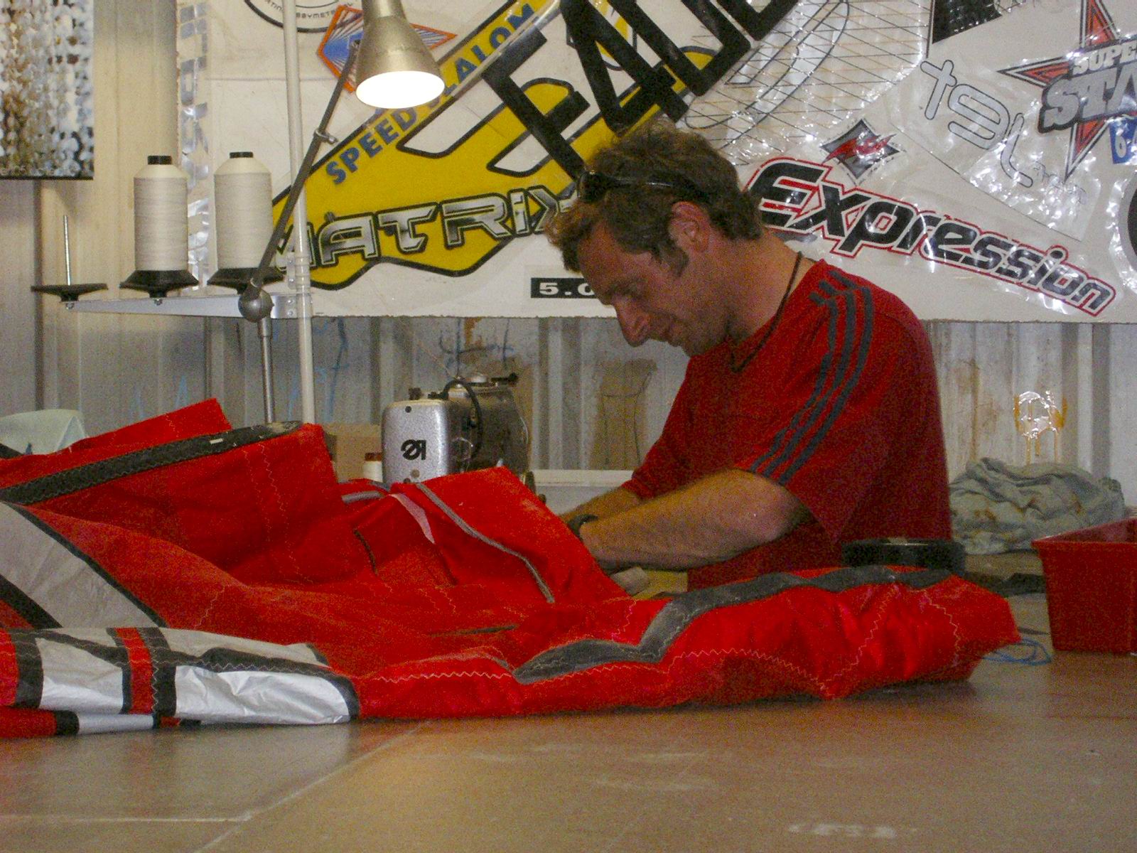 Depuis le Mondial du vent 2005, Cristo est, pour votre matos, un peu notre Georges Clooney dans Urgences…Il fait des miracles à coup de fil et d’aiguille pour remettre en état votre équipement que vous soyez kiter, windsurfer ou navigateur en haute mer.