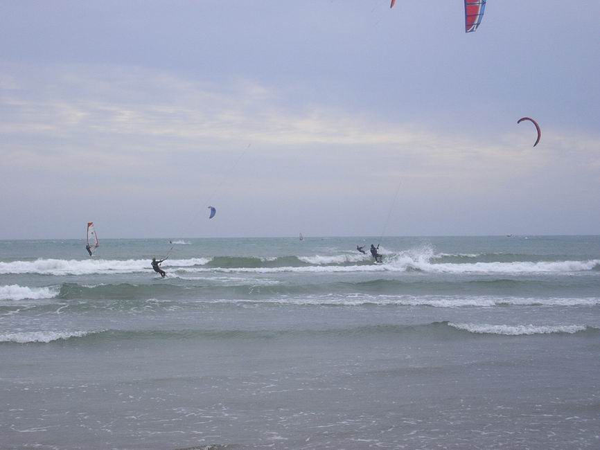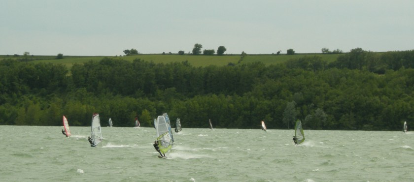 Vendredi, le vent aurait été un peu moins fort tandis que samedi, il n’y eut qu’une vingtaine de voiles sur l’eau par vent plus Sud, peut-être en raison de prévisions à tort pessimistes et de navigation en mer pour certains.