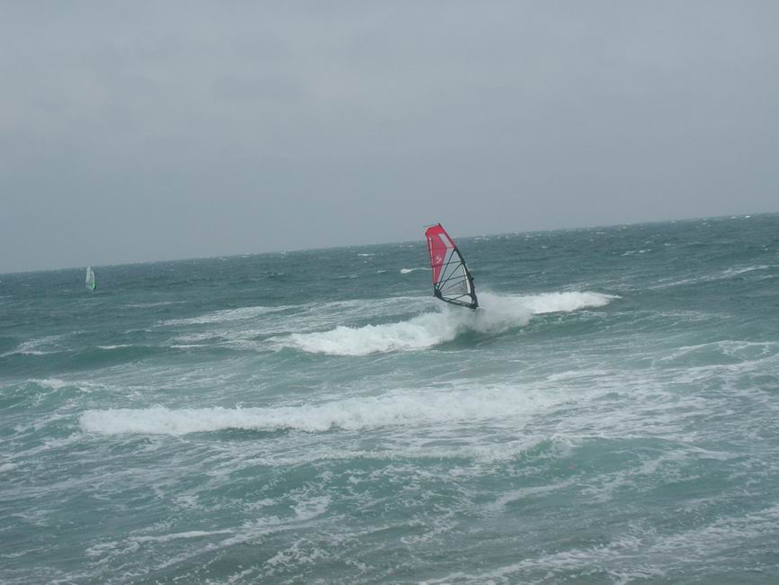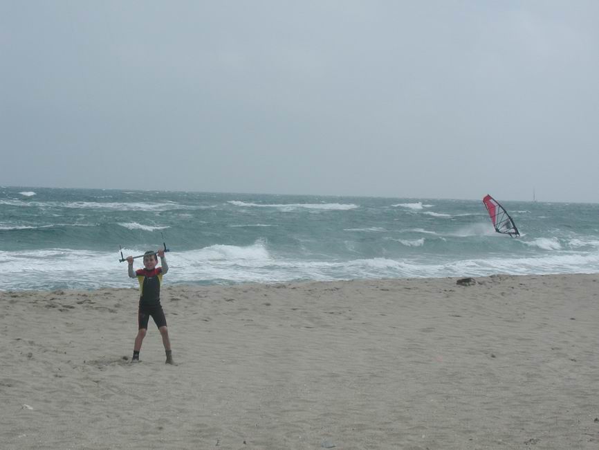 Loin de moi l’idée de créer des tensions familiales lors du sacro saint repas dominical mais quelques chose me dit que la succession du wishbone dans la famille Gardais n’est pas gagné d’avance…Pendant que le papa surfe, Junior semble avoir délaissé la tecktonik et commence à se faire les bras avec une aile à caisson dans un vent pourtant solide.