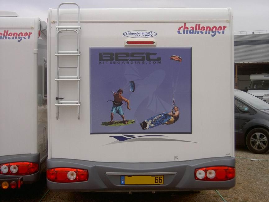 Pas grave, parce qu’avec son camping-car, il sillonne les spots à la recherche de la vague parfaite. De plus, Patrick Michel, membre du Canet Kite Club et adepte des ailes Best kiteboarding, s’est fendu dernièrement d’une déco originale sur sa kite’mobile histoire de donner le ton lorsqu’il arrive au camping. Bon allez, Patrick, prochain article sur toi, le poisson Best tatoué en 30 par 30 dans le dos !