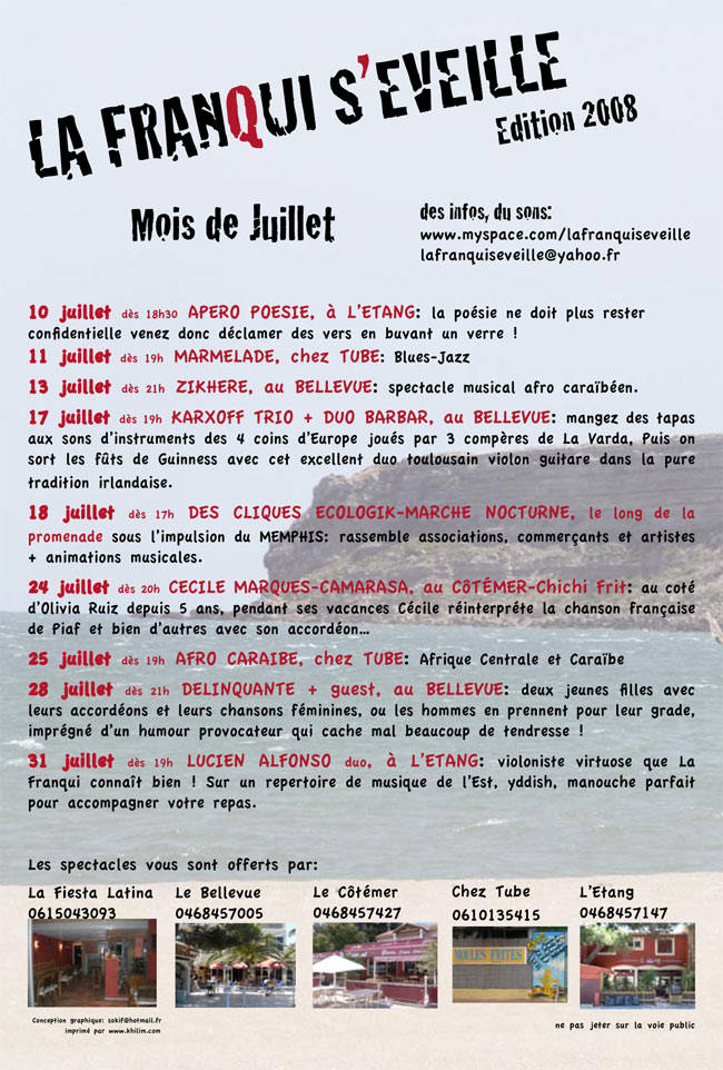 Durant tout l’été, La Franqui bouge au rythme des concerts pour vous faire découvrir des artistes et des musiques venus des 4 coins du monde.