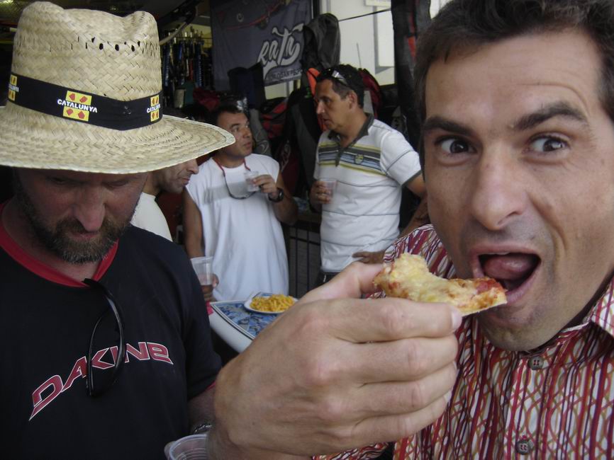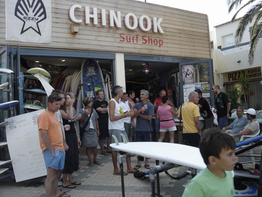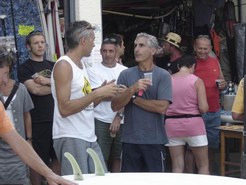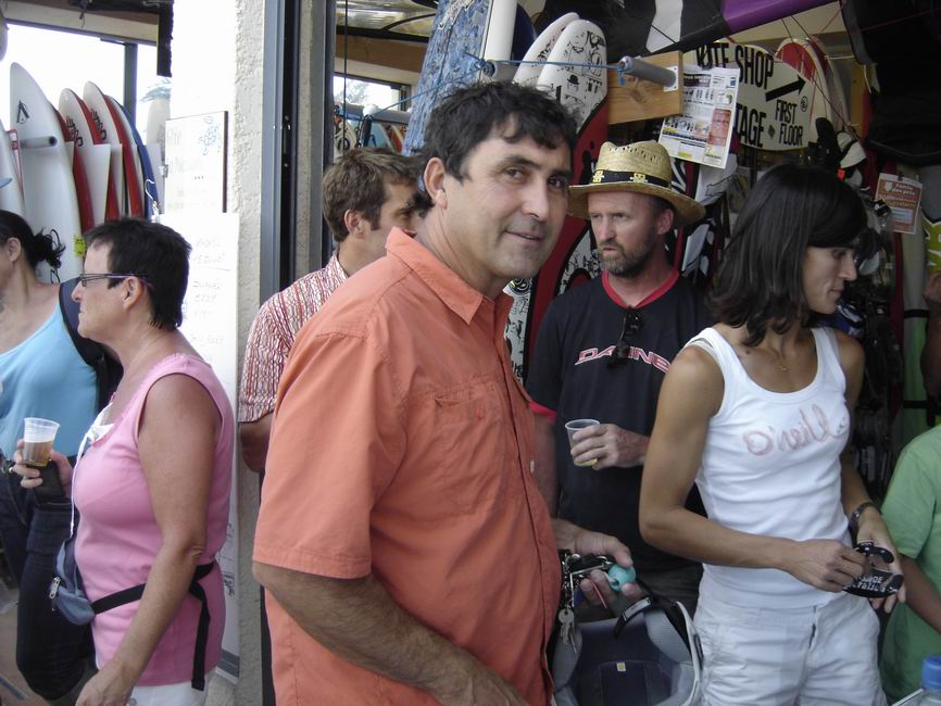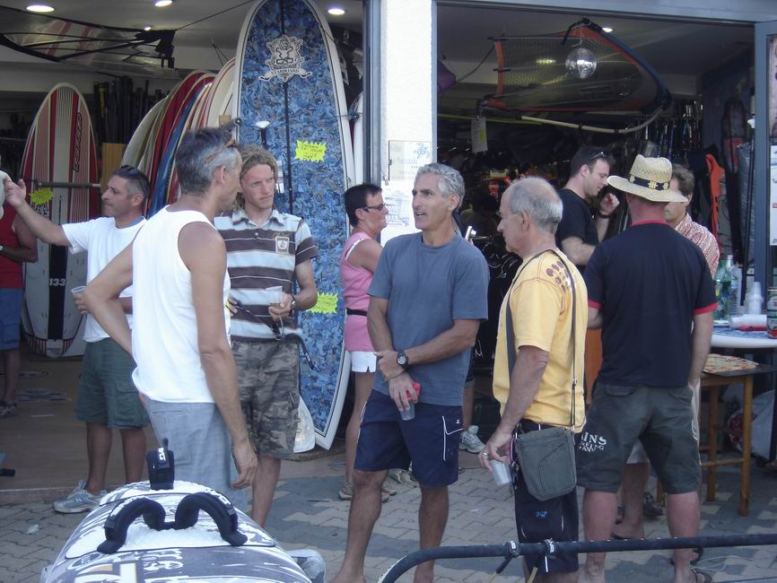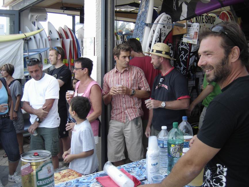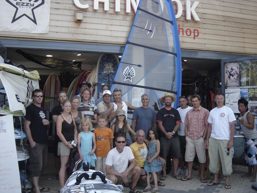 Après Francisco Goya, David Ezzy était l’autre invité de marque attendu au shop. Suite à une session au spot de la mine pour tester les Ezzy Freewave et Panther 2009, tout le monde s’est retrouvé au magasin comme convenu pour la présentation technique des gammes suivi d’un apéro (elle était comment la pizza, Florent ? 😉 ).
