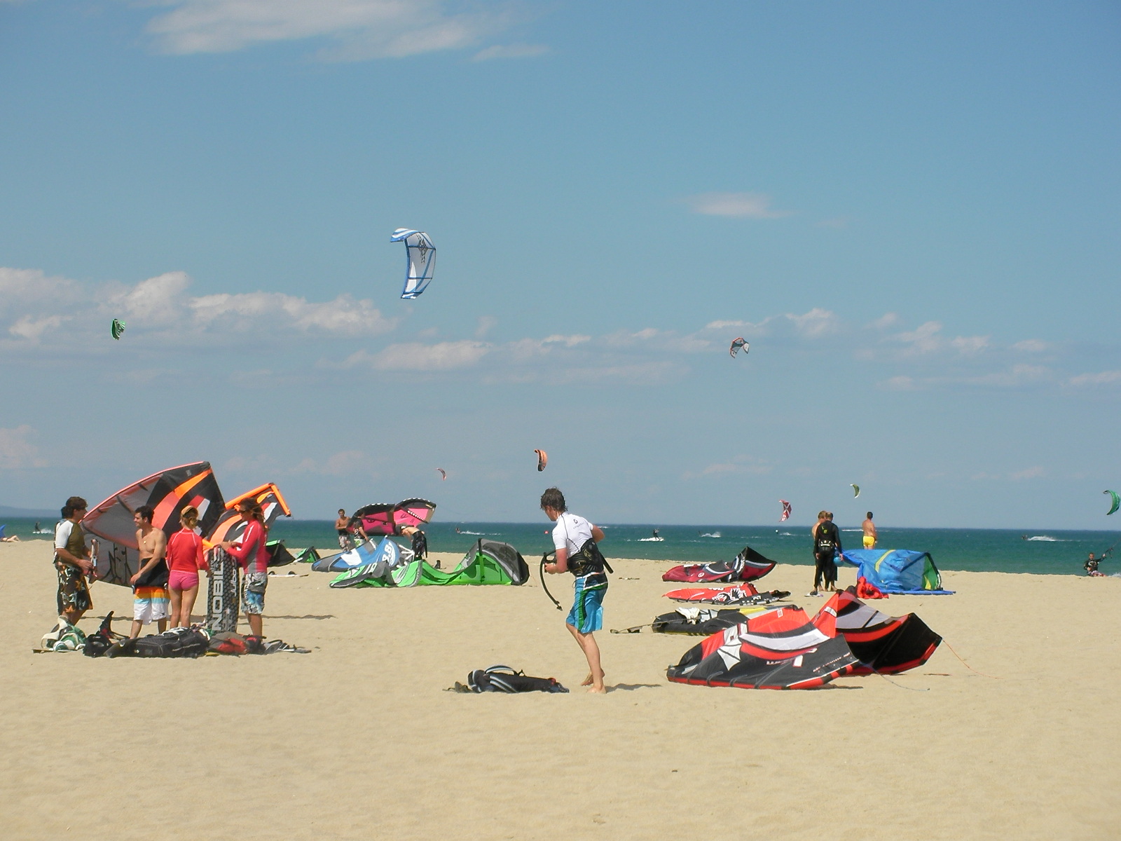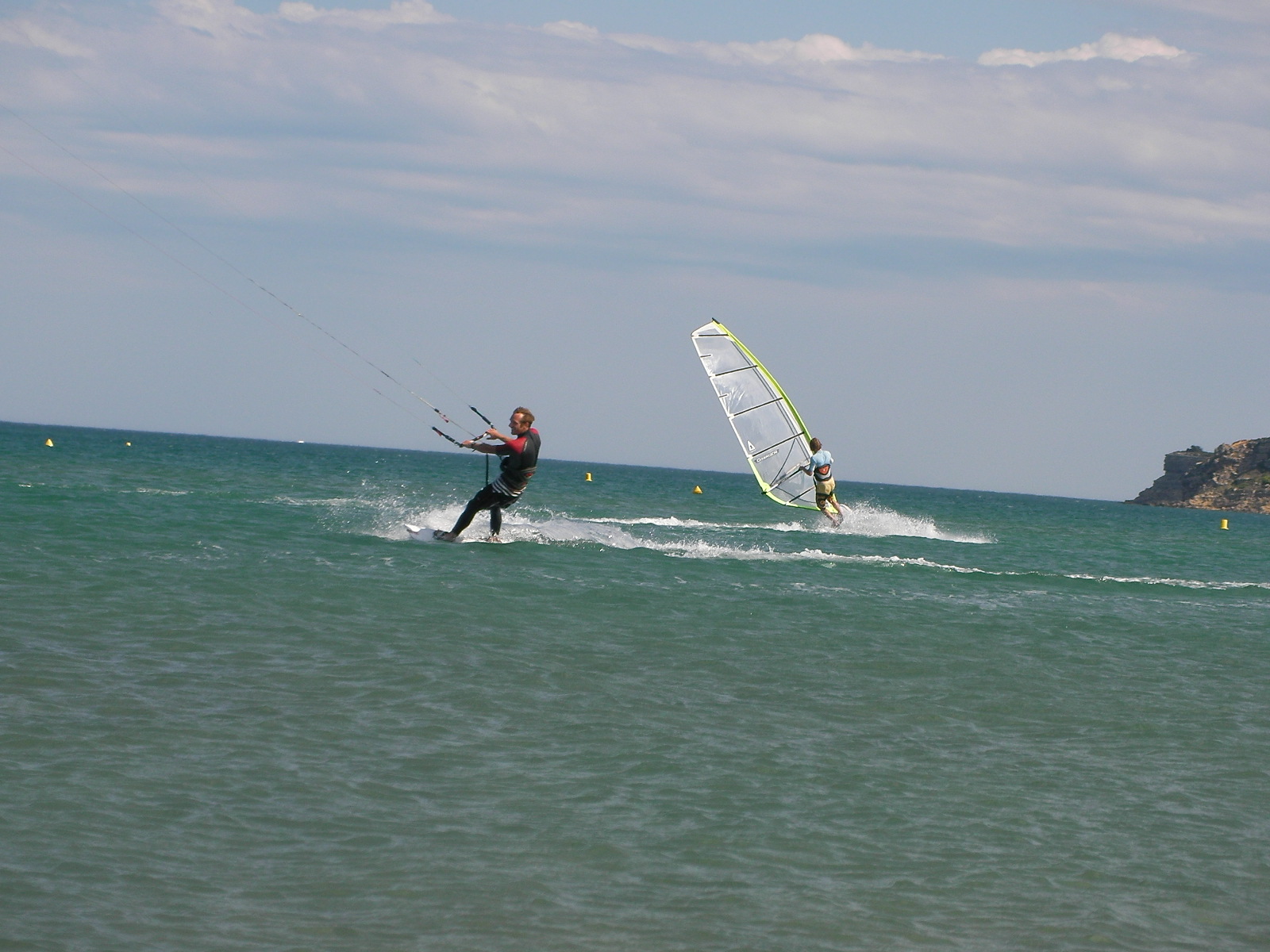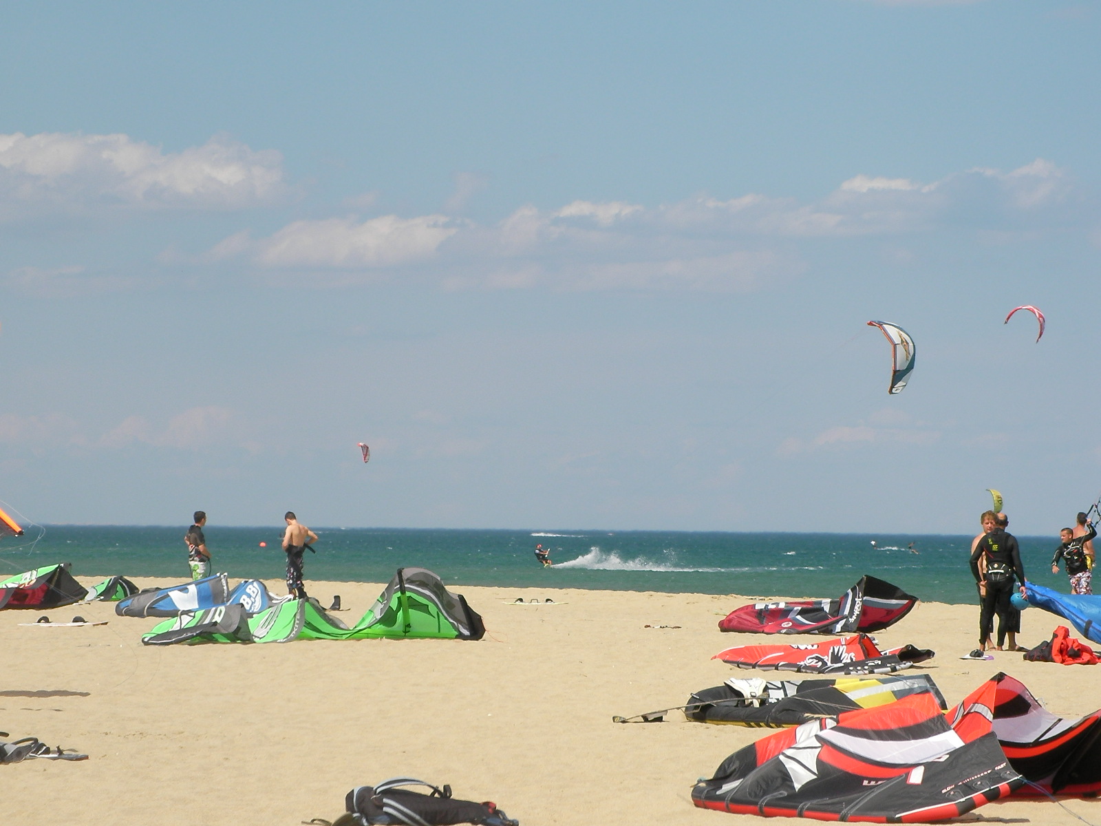 Ce samedi sur Leucate, la tram’ a été contrariée par le thermique de Sud qui soufflait déjà en début d’après-midi sur le roussillon. Nous avons donc eu le droit à de belles risées toute l’après-midi après une matinée plus régulière dixit les pros du réveil. Navigation en 9 voire 7 voire 5 m2 (chapeau Christian !), du monde sur l’eau et sur la plage avec une sécurité toujours bien assurée par le Cozy team.