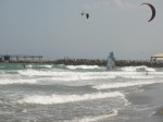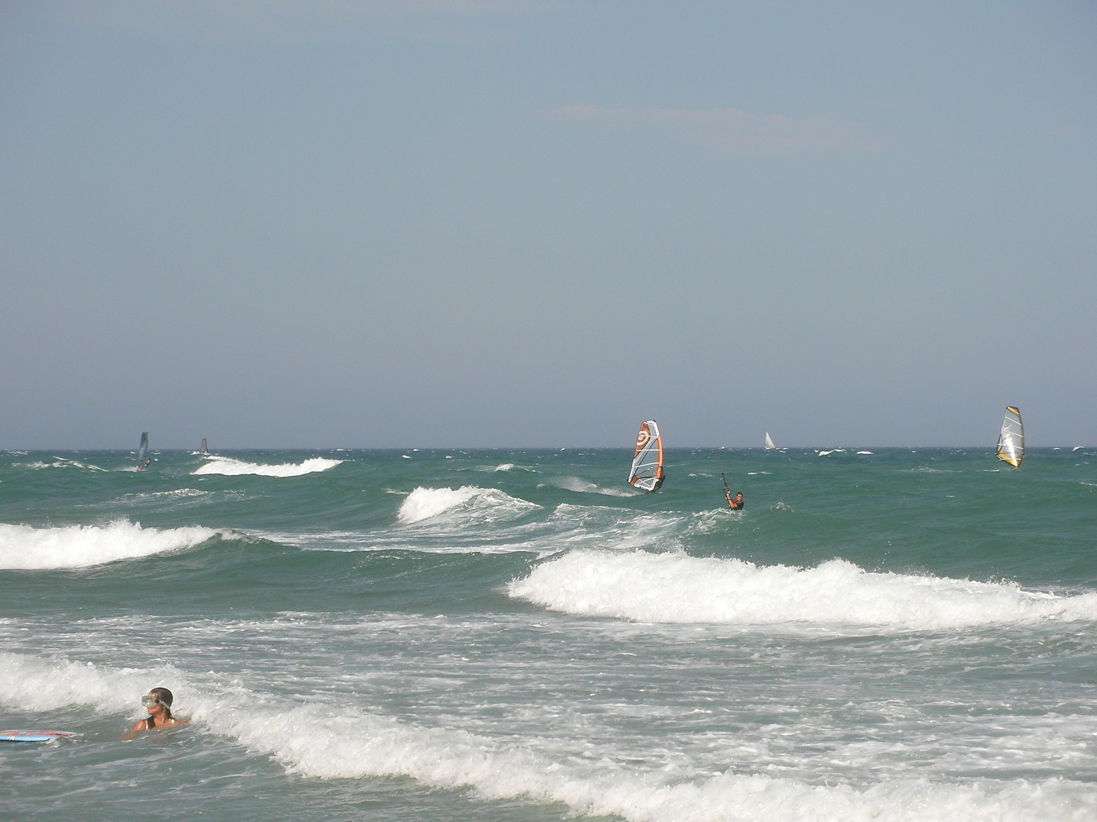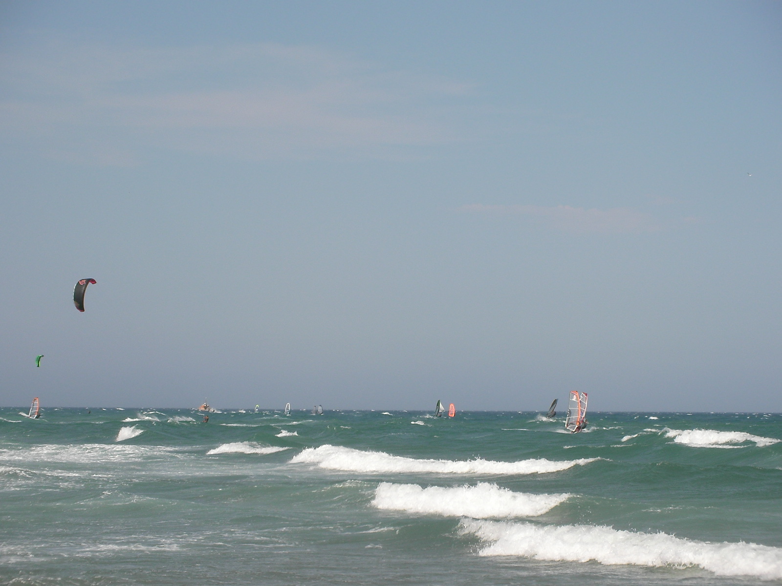 Du « vrai » marin après le thermique d’hier pour cette journée de lundi. Peu après 13 heures, le vent est rentré rapidement en arrosant d’abord la côte rocheuse (rafales à plus de 80 km/h au cap Béar) puis est arrivé jusqu’à Leucate peu de temps après. Plus de 35 nds sur le Roussillon, 25/30 nds au spot des pilotis, du marin comme nous n’en avions pas eu depuis longtemps.