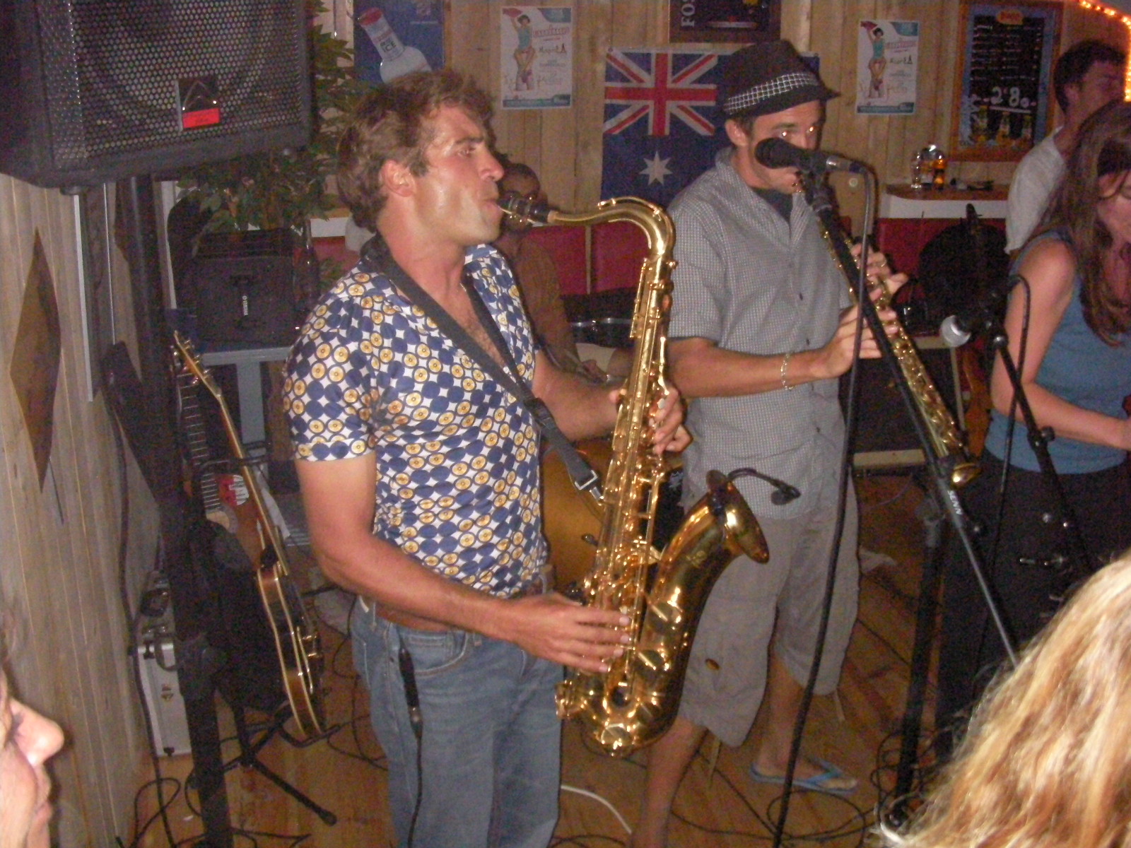 Grosse chaleur dans le Bleu café ce samedi puisque l’énergie de Los Raskaï a fait grimper le thermomètre pour une soirée de zique qui a fait danser la foule. Comme au Mondial du vent 2008, le groupe a assuré le spectacle en 2ième partie de soirée et ce jusque tard dans la nuit. Toujours accroché avec style au saxo, Tot’ a une fois de plus posé la VHF de son école de kite pour assurer avec ses collègues un concert qui n’envoyait du bois !