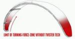 Le Twister Tech est une nouvelle technologie de construction du bord d’attaque qui permet d’augmenter le twist du bord d’attaque en réponse à la traction des lignes arrières, donc aux commandes du rider. Augmenter la capacité d’un bord d’attaque à se twister permet d’accélérer la rotation du kite et de diminuer le rayon de rotation.