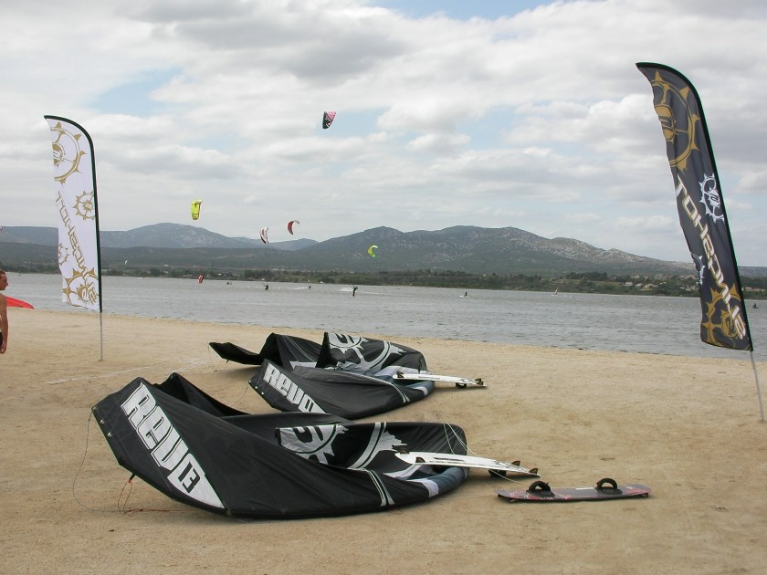 La tramontane qui devait tomber à la mi-journée a eu la gentillesse de jouer les prolongations ce mercredi du côté de La Palme. Chance pour le team Slingshot France qui a pu faire tester la gamme 2009 toute la journée pour découvrir les évolutions des kites et des boards. Un spot fidèle à sa réputation quant à sa régularité de vent légendaire mais qui aura quand même permis de naviguer entre 9 et 13 m2.