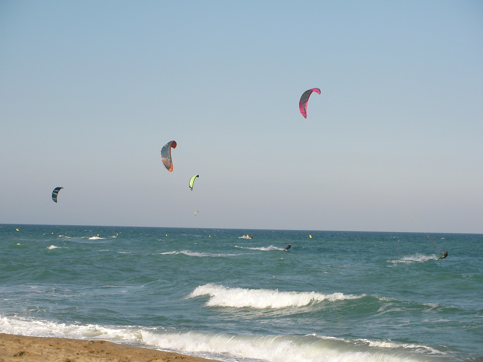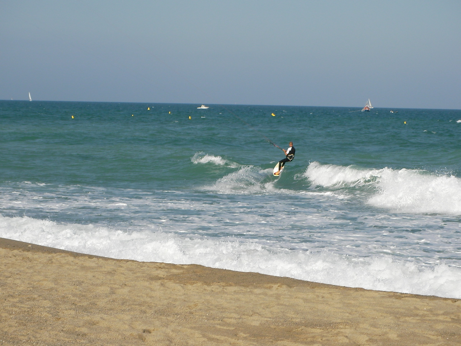 Petit vent marin sur la côte catalane ce dimanche 28 septembre. Un peu comme hier, le vent est rentré doucement vers 16 heures à 10/15 nds pour se renforcer à environ 15/18 nds vers 17h30 avec quelques belles séries de petites vagues. Du vent donc entre Argelès et Canet en passant, comme ci-dessous, par Saint Cyprien avec une tendance à s’essoufler au fur et à mesure que l’on allait vers le Nord de la zone.