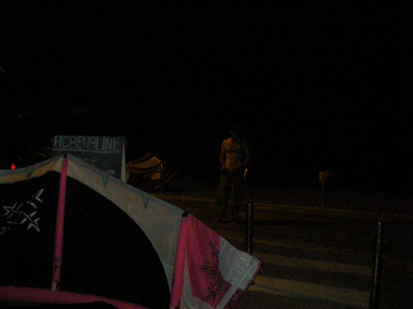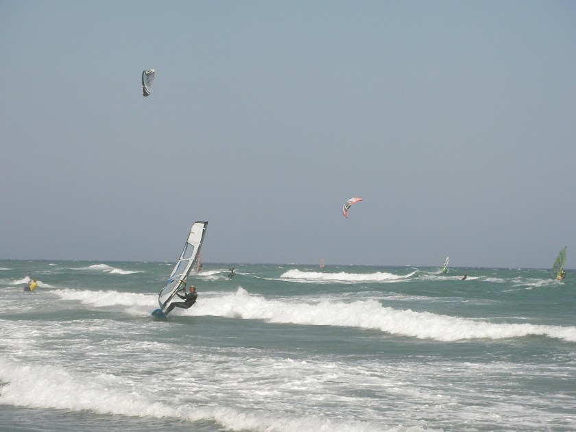 Bah oui, c’est l’adage qui collait le mieux à ce qui se dégage de cette journée de mercredi. Des conditions que beaucoup attendaient avec une vent marin fort, tournant progressivement très Sud et surtout une houle qui va aller en augmentant pour attendre plus de 2 mètres dans les belles séries. Cela faisait tellement longtemps que ça paraissait encore plus gros. Ajoutez à cela une eau et un vent vraiment tièdes permettant de naviguer uniquement en board short et vous comprendrez que c’était très très bon. Le vent a pourtant faiblit après 17 h pour reprendre un bon moment mais complètement sud (side shore tribord) et complété par des vagues encore plus lisses. Vers 18h30 le marin est complètement tombé pour laisser la place à une tramontane orageuse.