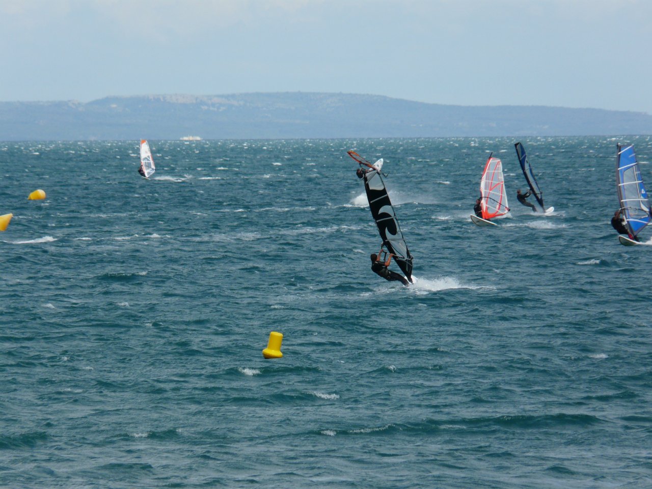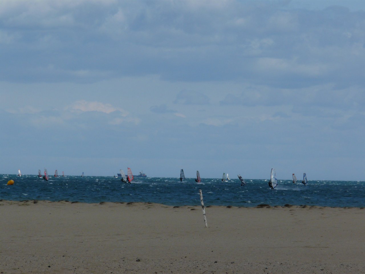 Sandrine et David étaient à Barcarès, plus exactement sur le spot d’Eole, ce dimanche. Partis d’Argelès le matin, le Roussillon était arrosé d’une tramontane trop violente et très off. Du côté de la Coudalère, c’était guère mieux : 50/55 nds et un rideau d’embruns qui volaient au dessus de l’eau. Finalement David plantera le camps à Eole vers 10h30 accompagnés de 3 autres furieux en 3,7/4,1m2. Les rafales étaient violentes et le bassin n’était pas fréquentable… Finalement, le spot va devenir acceptable en micro voile et, en début d’après-midi, les renforts arriveront alors que le vent commencera à devenir plus irrégulier en force et en orientation.