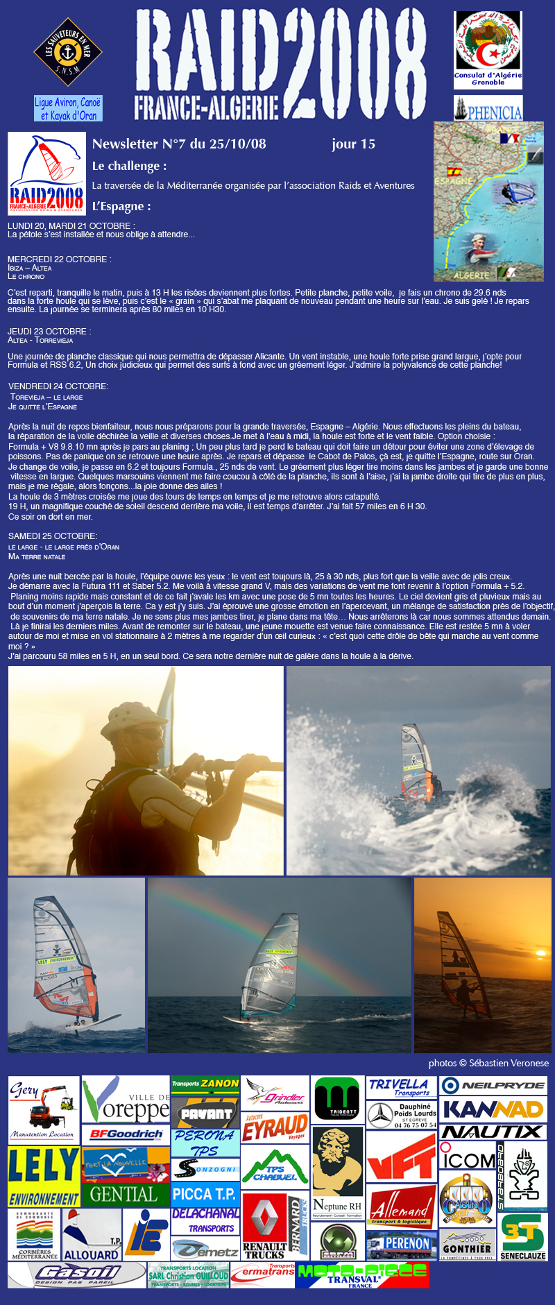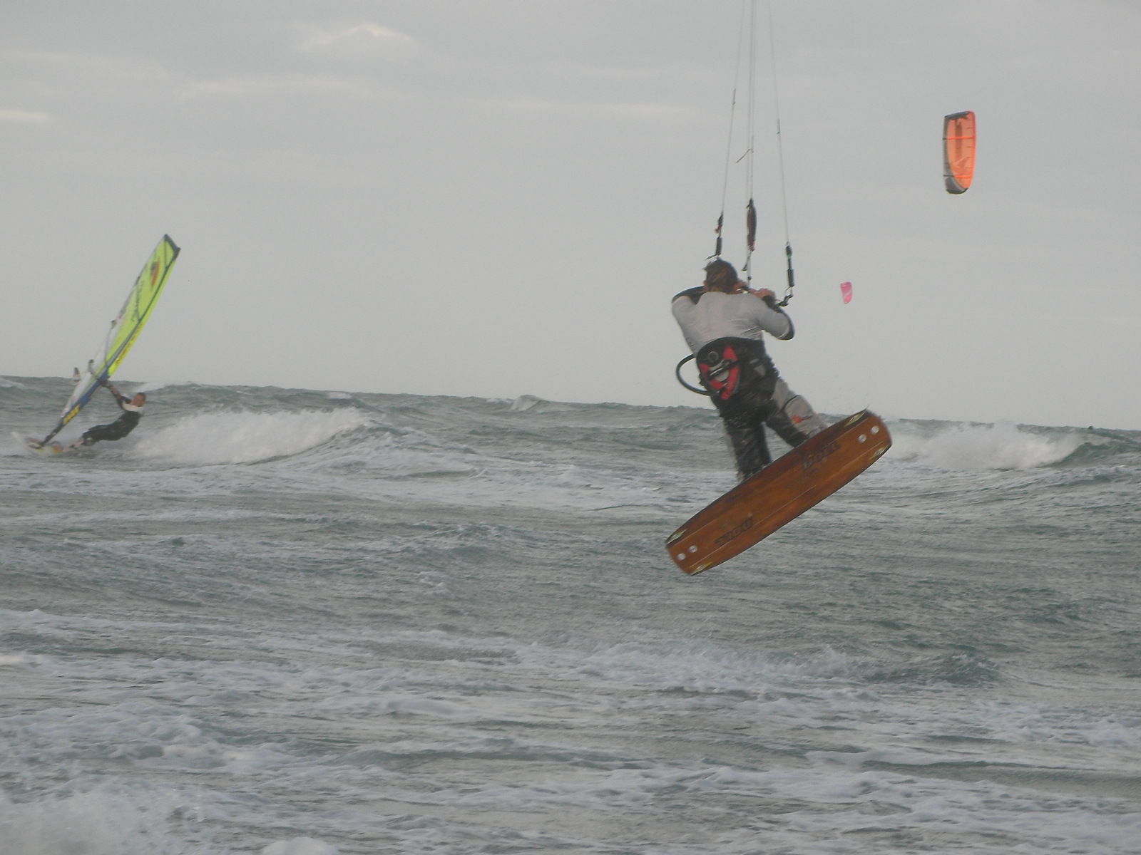 D’où la belle session de David, toujours sur les bons coups et qui nous envoie les photos de son après-midi sous l’objectif de Sandrine. Le vent à tendance Est donc mais très oscillant tant en force qu’en direction, a atteint force 8 dans l’après-midi pour rassasier les très nombreux fidèles du spot présents hier et qui arrivaient encore vers 16 heures alors que David levait le camp. A signaler la douceur de la température de l’air mais aussi de l’eau sous le soleil automnal.
