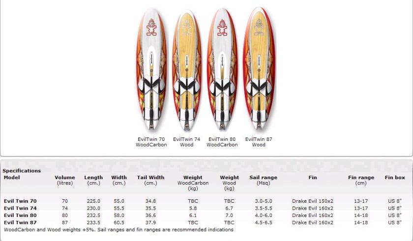 De part et d’autre des deux modèles Eviltwin 74 et 80 litres, Starboard proposera dès le mois de novembre, deux nouvelles tailles dans la gamme twin’: une 70 litres pour le carton ou les gabarits légers et une 87 litres pour les adeptes du surf dans la brise et les « Antoine Albeau » en puissance. A découvrir donc prochainement.
