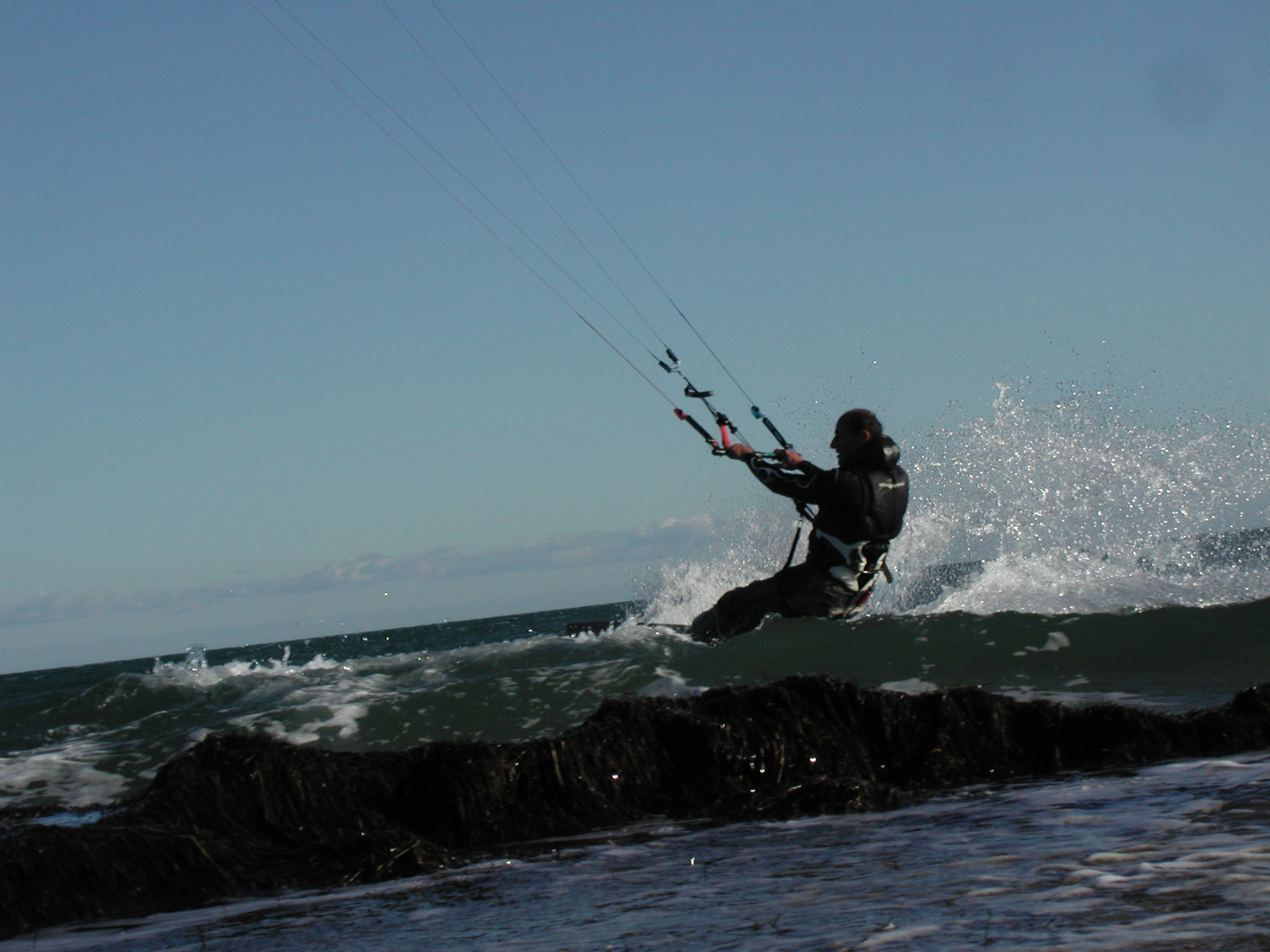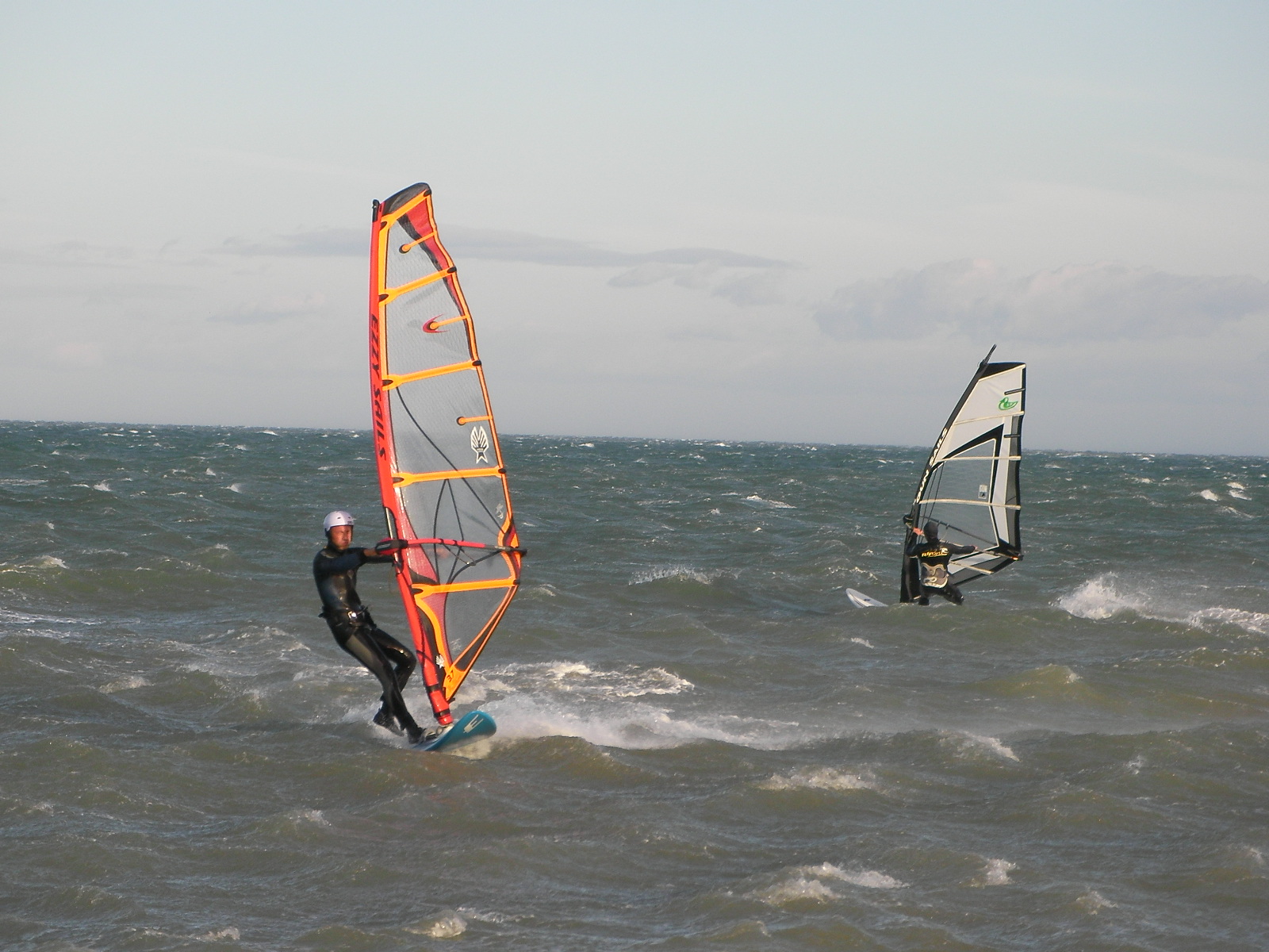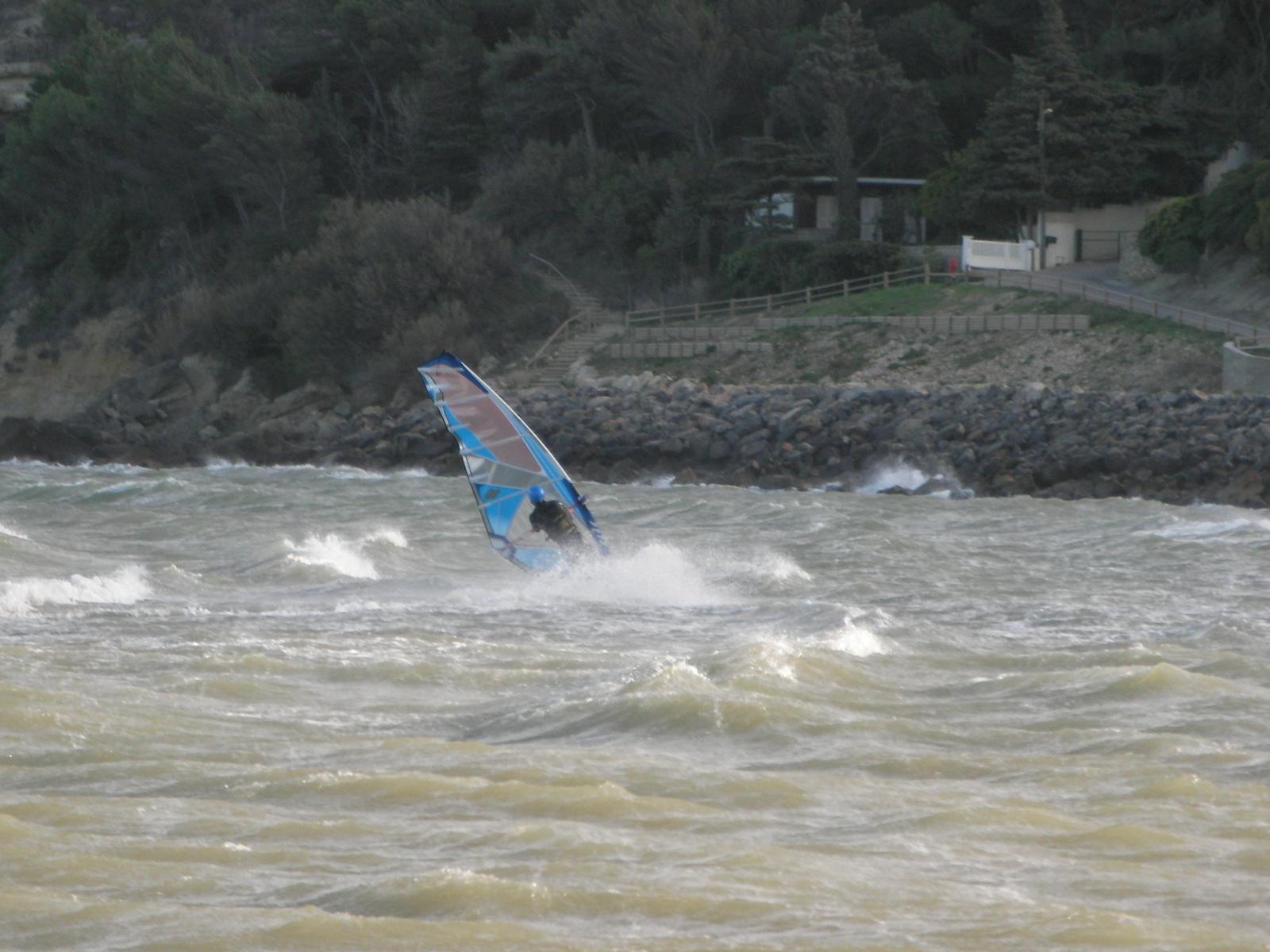 5 furieux, pas un de plus, pour une session qui, comme le laissaient présager les prévisions de ce samedi, fut carrément froide et difficile. Jean, Benoit et 3 autres surmotivés pour affronter les rafales à plus de 50 nds de cette journée pourtant ensoleillée à La Franqui. La tramontane était orientée au Nord avec de quoi sauter entre les tourbillons d’embruns. Vraiment pas le jour à sortir la boué canard.