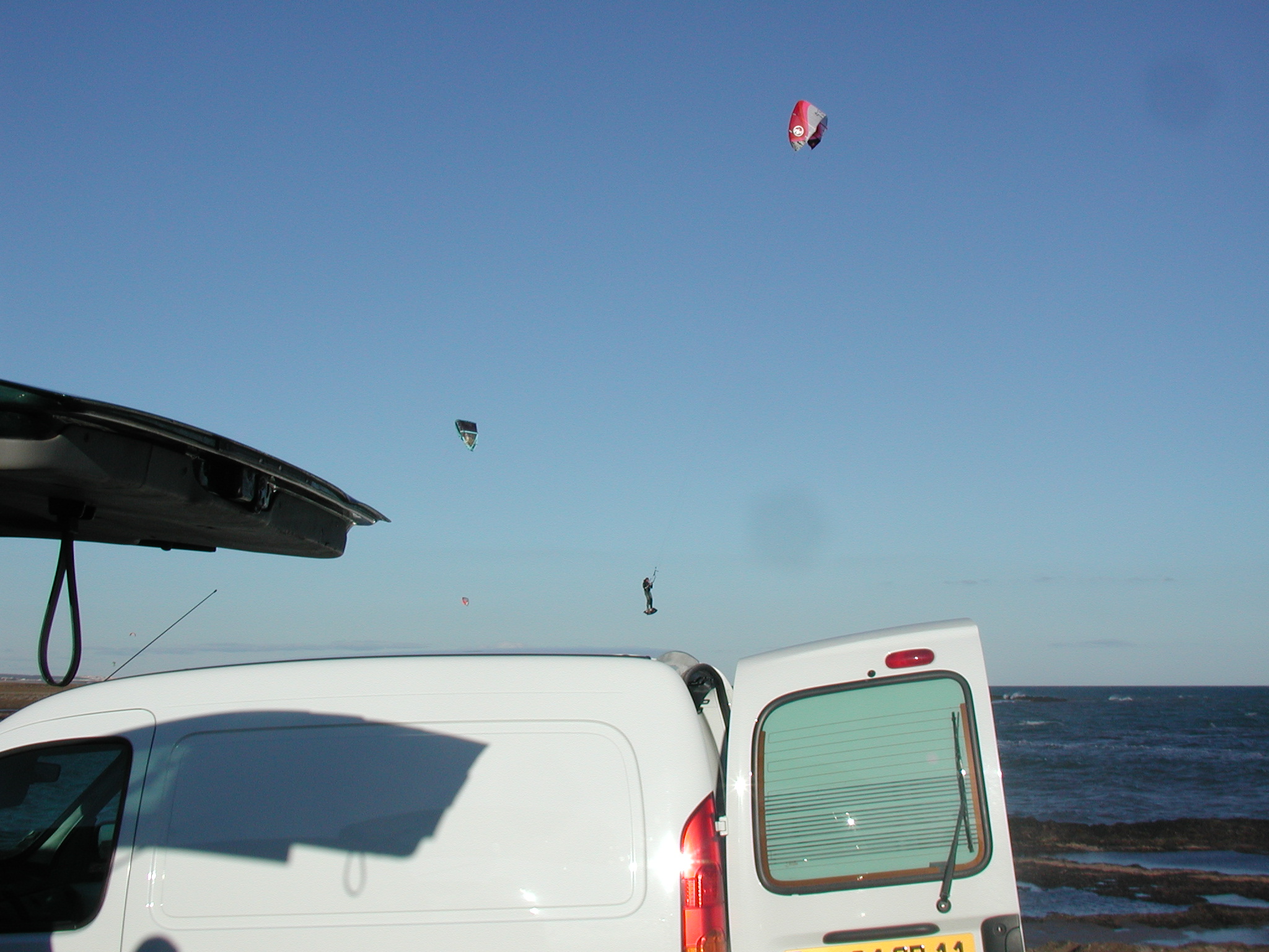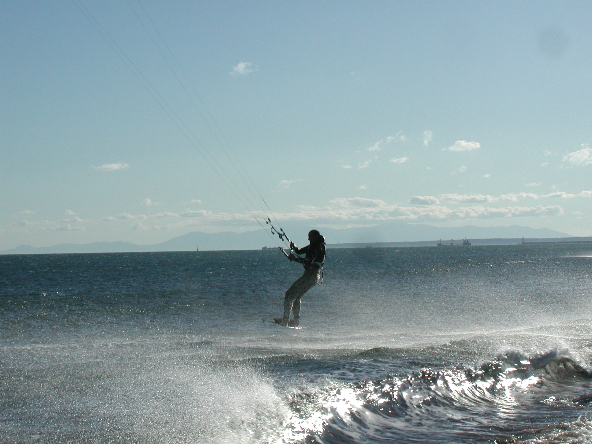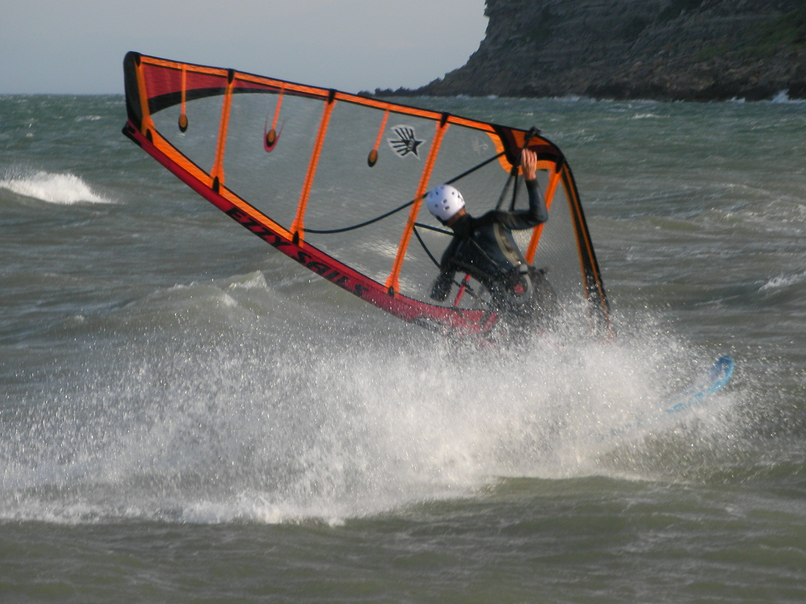 5 furieux, pas un de plus, pour une session qui, comme le laissaient présager les prévisions de ce samedi, fut carrément froide et difficile. Jean, Benoit et 3 autres surmotivés pour affronter les rafales à plus de 50 nds de cette journée pourtant ensoleillée à La Franqui. La tramontane était orientée au Nord avec de quoi sauter entre les tourbillons d’embruns. Vraiment pas le jour à sortir la boué canard.