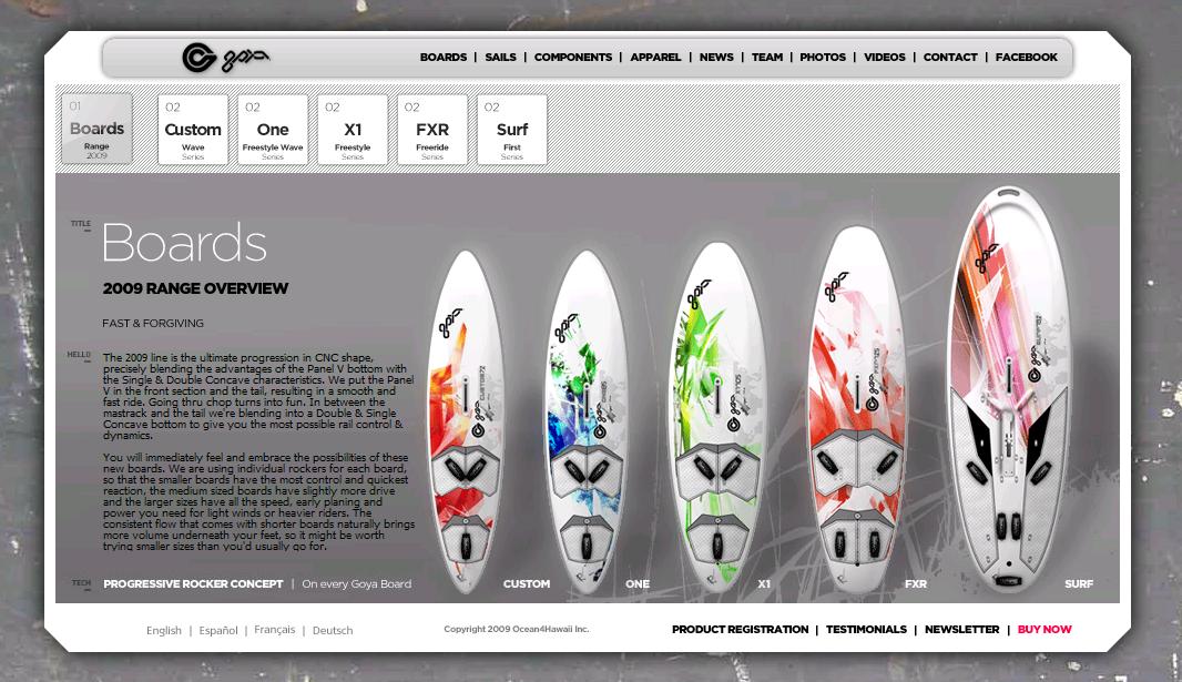 Parmi les derniers à updater et non des moindres, la version 2009 du site de Francisco Goya vient d’être mise en ligne avec les nouvelles collections de planches et voiles modifiées, améliorées voire reshapées par l’argentin volant depuis son home spot hawaïen. A découvrir sans tarder sur la toile et au shop prochainement.