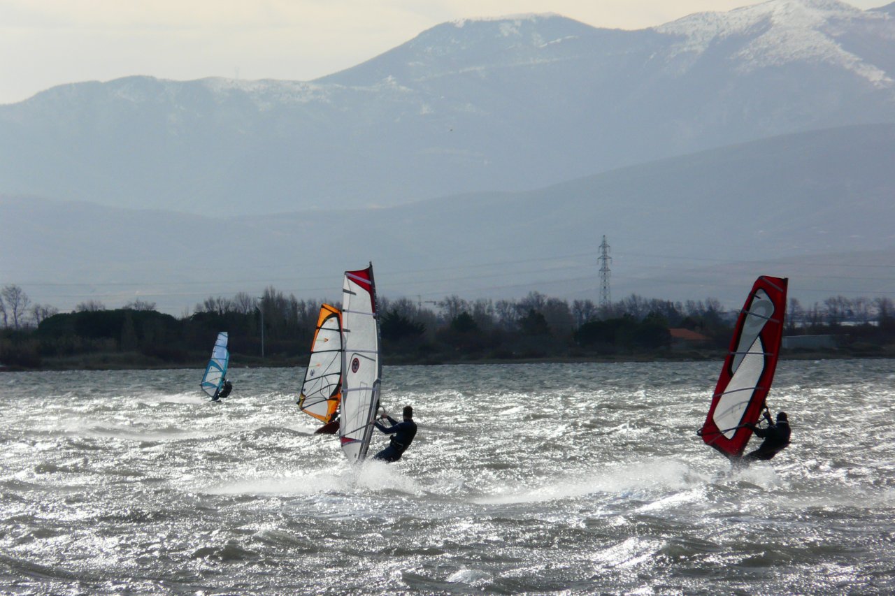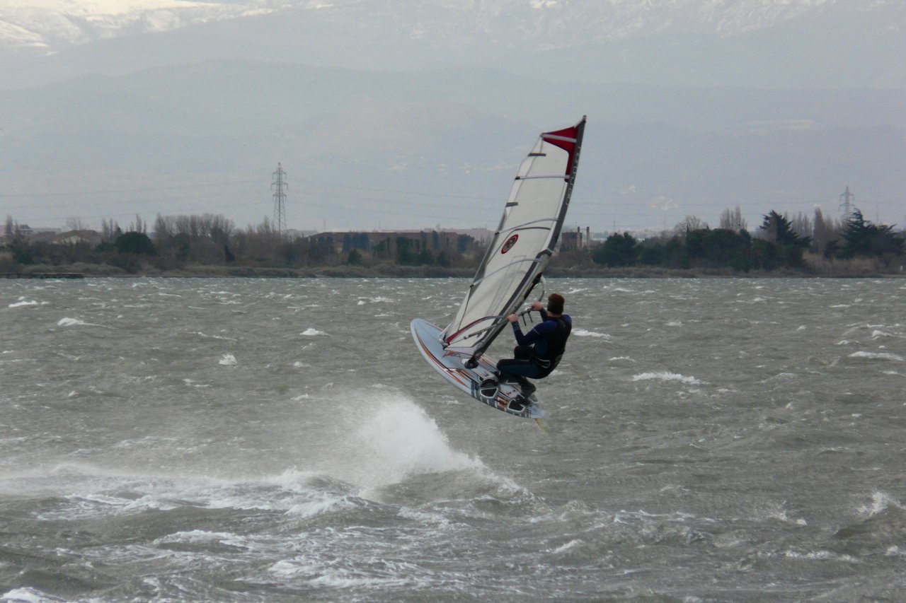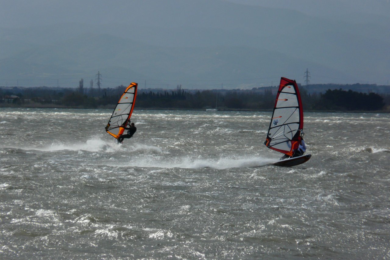 De la tramontane forte et de la « fraîcheur », ce samedi, pour les irréductibles de l’étang qui sont allés se faire une belle session de tramontane à la Coudalère (Barcarès). David, une fois de plus sur le coup, a rejoint Annie, DD et les habitués du spot pour naviguer en 4/4,5 m2 dans un vent irrégulier qui prendra des tours en fin de journée. Cela n’a d’ailleurs pas réellement faibli durant le week-end puisque la tramontane, qui soufflait à près de 80 km/h à Leucate samedi, a poussé une pointe à 100 km/h aujourd’hui tandis qu’au cap Béar, on relevait 137 km/h hier et 144 km/h cette après-midi…