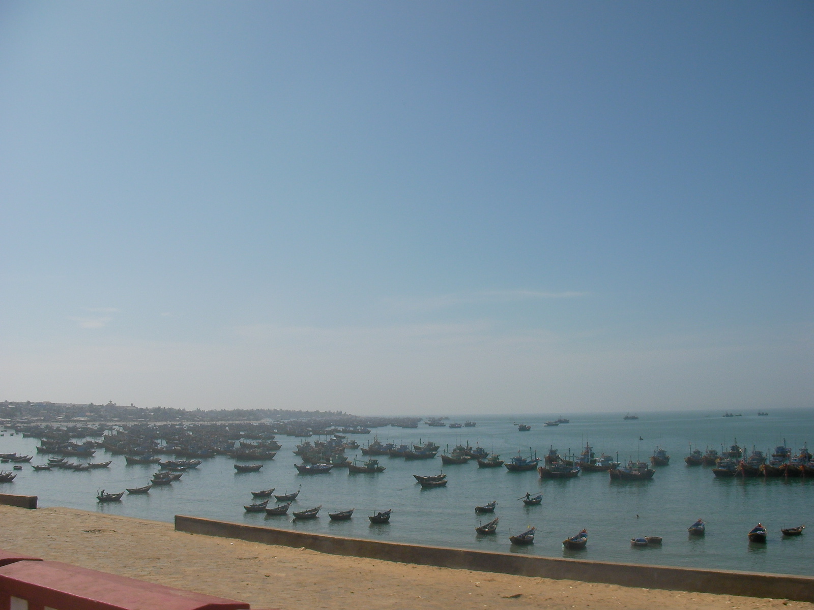 Les vietnamiens sont très accueillants et toujours près pour un tour de 2 roues (peureux s’abstenir). Avec 1000 scooters pour une voiture, le pilotage est un art mais au final, ça passe… Ci dessous, le port de pêche de Mui Ne duquel des centaines de bateaux sortent chaque jour. Comme dans les films, je vous dis…