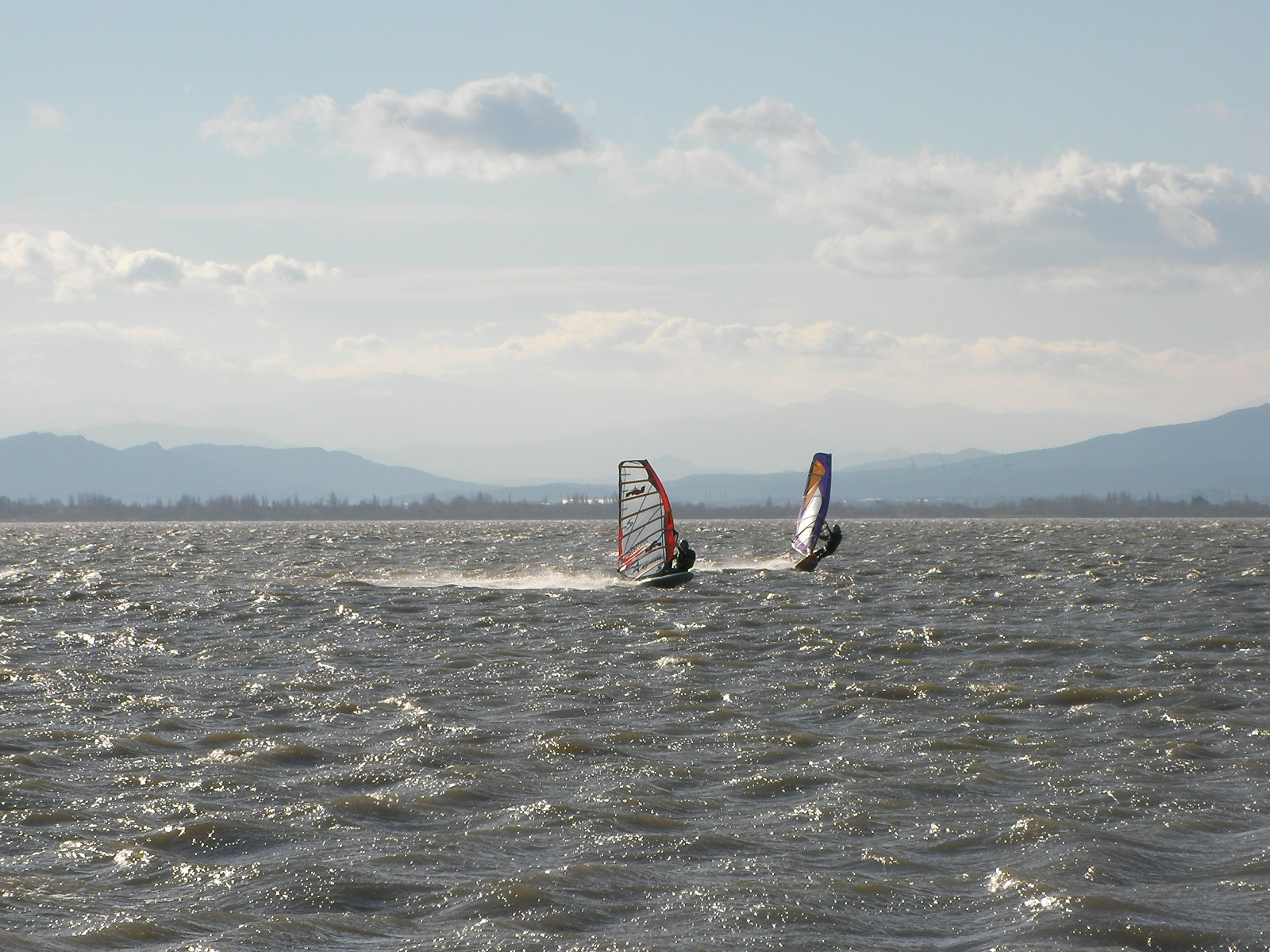 A défaut d’être exceptionnelle, cette journée de mercredi aura été une fois de plus ventée puisque la tramontane a encore fait des siennes sur les spots. Dédé, Domi, Annie et André ainsi qu’un ami belge ont profité d’une orientation Ouest en 4,2 m2 à la Coudalère avant que le flux ne passe au Nord Ouest. Idem du côté d’Eole où il restait encore quelques planchistes en fin d’après-midi et à la Franqui où les 4,2 m2 étaient également de rigueur.