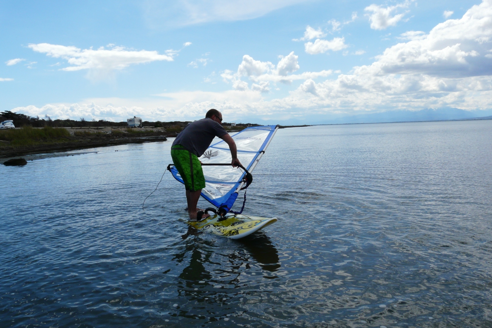 Le nouveau pack Ezzy 2.0 m2 a vraisemblablement conquis toute une famille puisque Emma n’a pas été la seule à faire ses premiers pas sur le spot des parcs à huitres. Il y a quelques semaines de cela, un jour de pétole comme il y en a peu ces derniers temps, il n’en fallait pas plus pour naviguer sur la RRD de papounet. De quoi donner envie à Sandrine de s’essayer à son tour sans compter David qui s’est lancé dans une séance de racing jibes full speed. Ezzy style de rigueur…