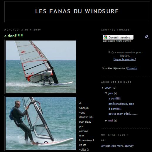On n’est jamais mieux servi que par soi-même…et comme les sessions se racontent plus facilement lorsqu’on les vit, une bande de passionnés de planche a décidé de se lancer en ouvrant un blog nommé Les fanas du windsurf . Parmi eux, Dom, Dédé, Paul, Patrick, Annie, André et de nombreux riders d’Argelès à Gruissan qui souhaitent partager leur passion sur le web et qui tiendront désormais à jour le résumé de leurs sessions.