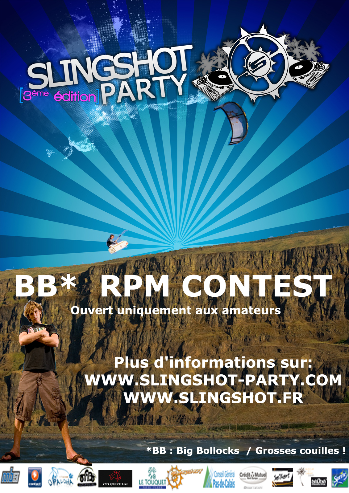 Alors si VRAIMENT tu as une vraie paire de BB*, viens t’inscrire à la SLINGSHOT PARTY … et fais toi plaisir !!!!!!!!!!!! »