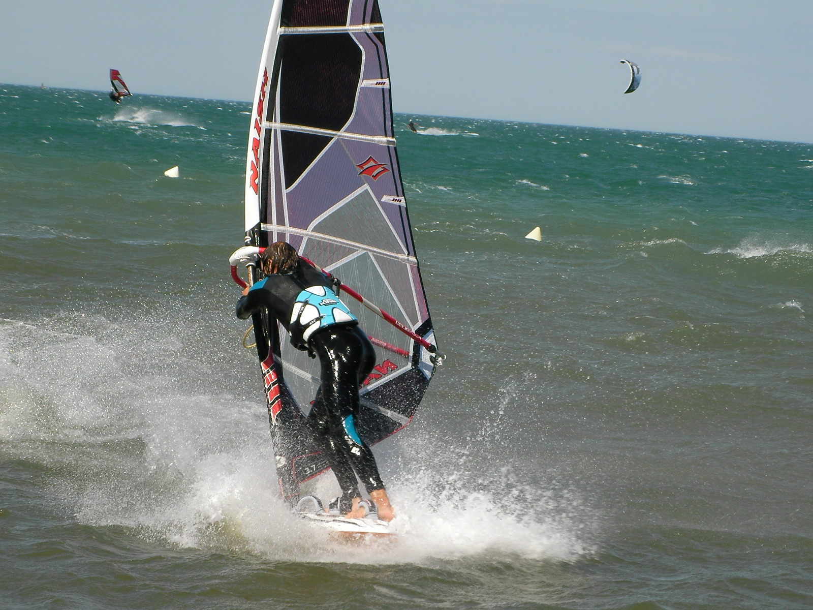 Cette journée de dimanche, qui était aussi la plus longue de l’année, aura été ventée jusqu’au bout. Un peu semblable à hier pour ce qui est du vent fort, ce dernier était plus régulier mais complété par un plan d’eau malheureusement un chouilla plus brouillon. Toujours autant de 4,0 m2 à l’eau et toujours aussi peu de kites sauf en matinée et soirée où le vent était moins violent. La suite du menu sera également tramontanesque même si le Nord-Ouest devrait perdre quelques forces durant les prochains jours. A suivre…