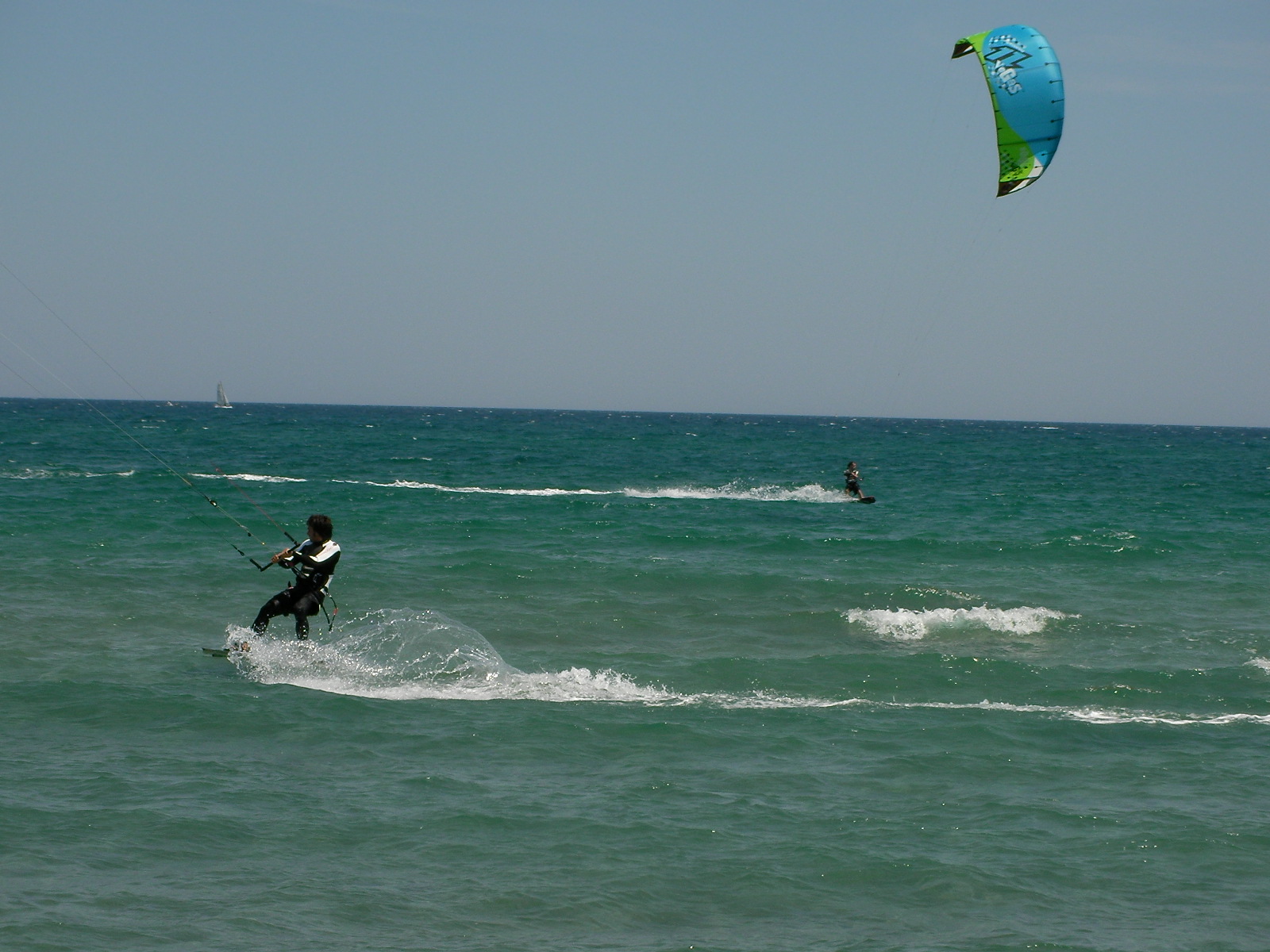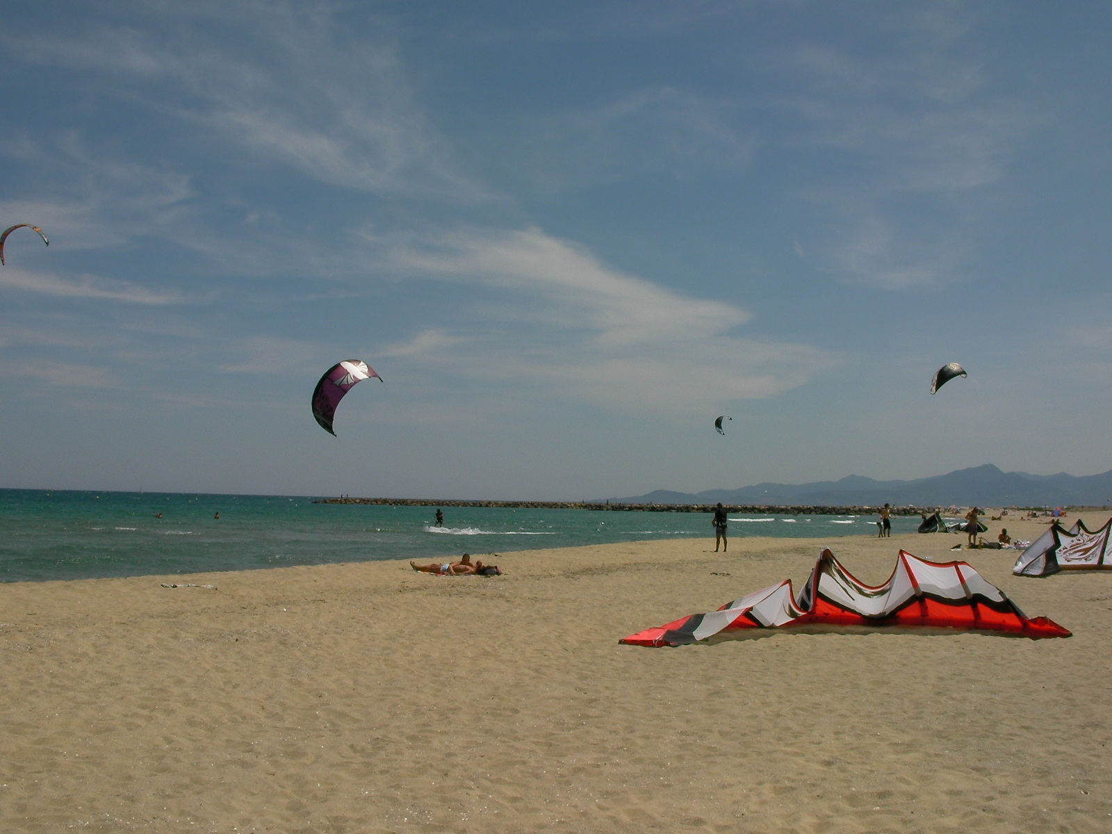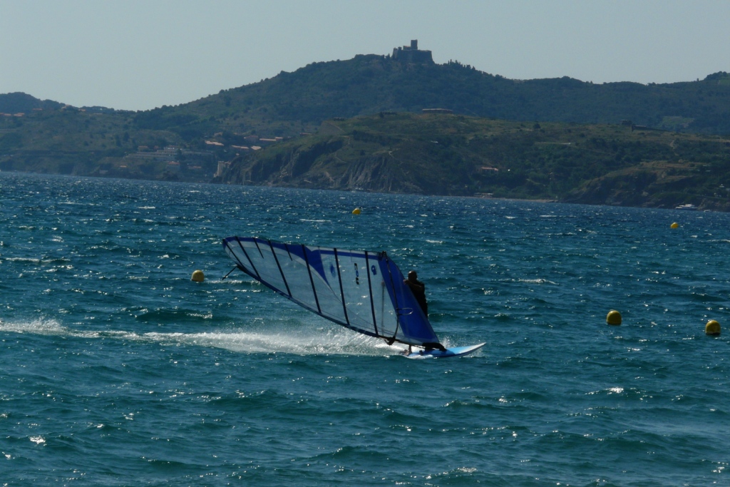..en allant chercher du vent frais dès la fin de matinée du côté d’Argelès. Suffisamment fort pour plancher en 5,8 m2 sur 106 litres pendant que son papounet se régalait en 7,5 m2. Le vent plus fort est donc resté localisé plus au large et au niveau du Racou mais ça valait largement le coup d’investir quelques kilomètres de plus.