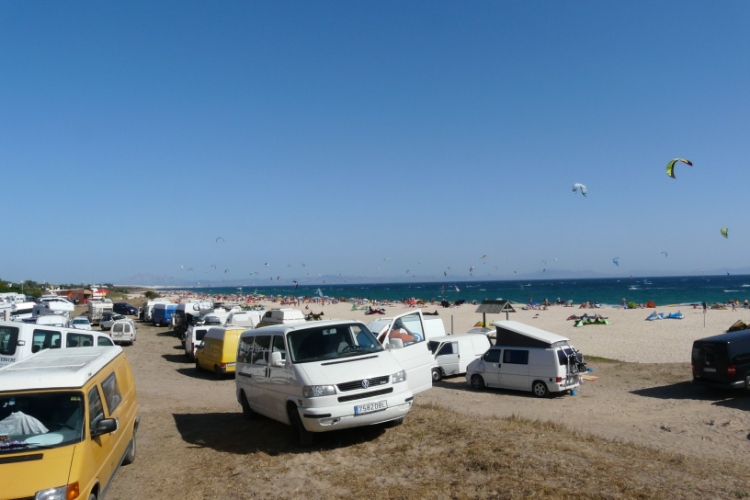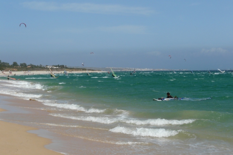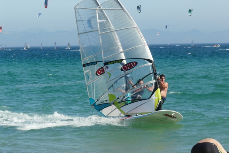 En direct de leur séjour à Tarifa, Emma, Sandrine et David nous font parvenir un aperçu de leur quotidien de vacanciers. Et ils en ont vu des choses depuis qu’ils sont arrivés. Du monde, beaucoup de monde sur les spots les jours de poniente léger, des kites, beaucoup de kites…Mais aussi un Jésus bien inspiré qui a choisi un sponsor de qualité pour enseigner à ses apôtres. Enfin, du levante bien solide à 40 nds pour faire siffler la 68 litres et la 4 m2. Et dire que ça doit continuer encore comme ça plusieurs jours. Allez…va rider, mon fils. Jésus te regarde et il est fier de toi…