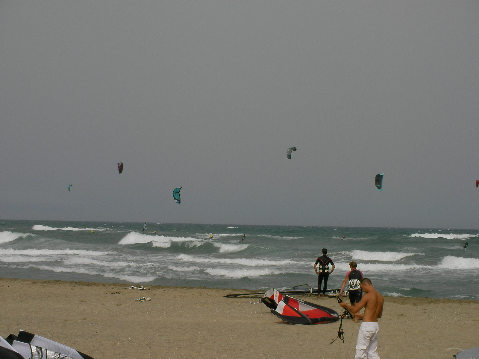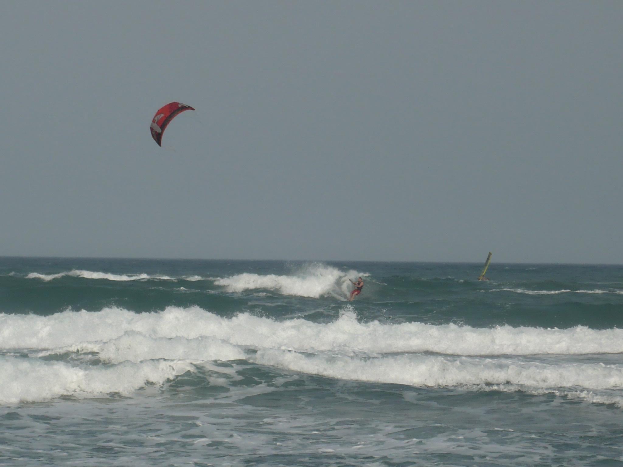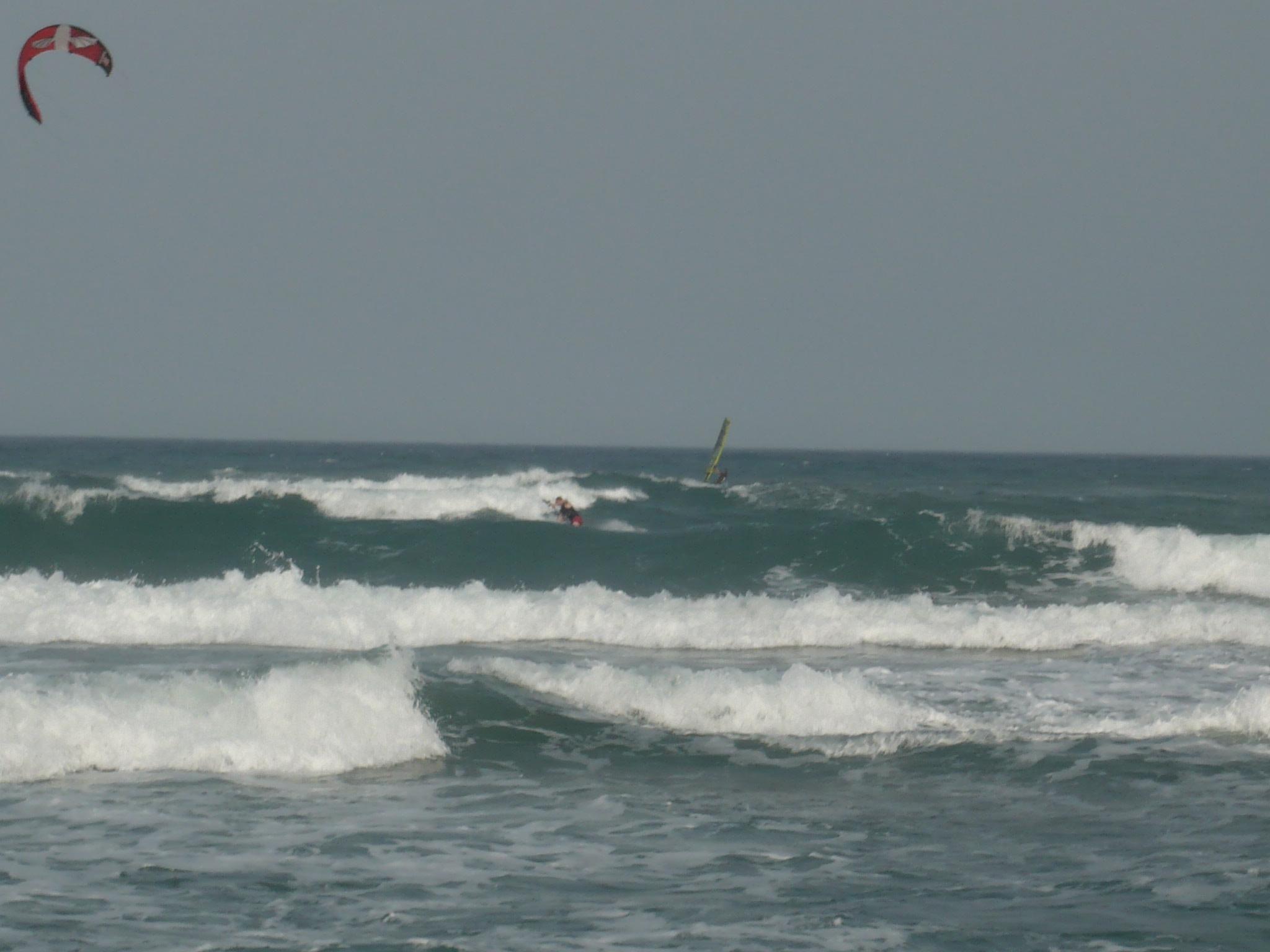Après 2 jours de marin, la houle qui continue de dérouler sur les spots leucatois avait rendez-vous en fin d’après-midi avec la tramontane. Ce jeudi s’est donc terminé par une petite renverse assez technique en raison du plan d’eau chahuté et d’une tramontane irrégulière tant en direction qu’en force. Progressivement les choses vont se caler un peu histoire de laisser les chauds du surf se régaler entre les coussoules et la Franqui village avant que le vent ne retombe complètement. Ci-dessous, les quasi premiers sur le spot: Marco et Clément et Jeff.