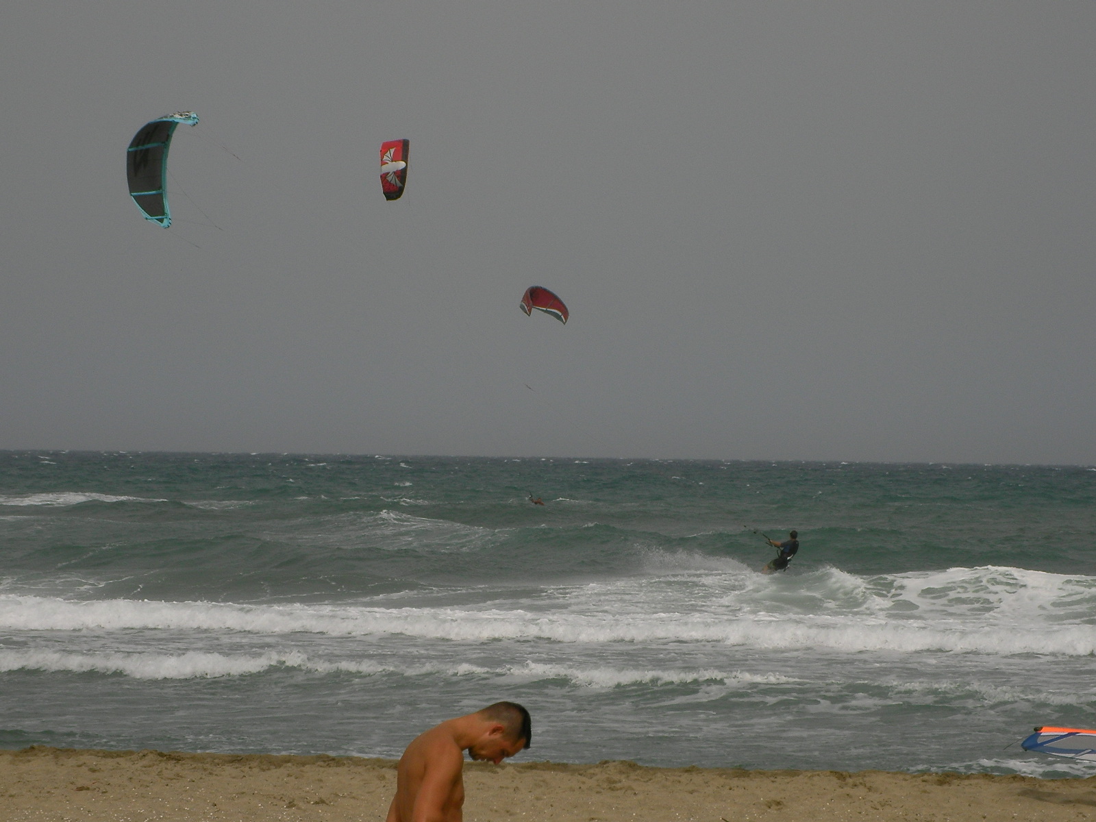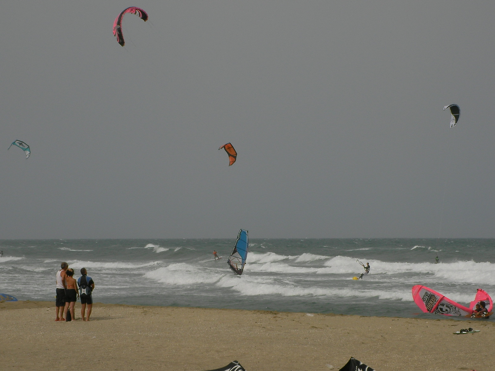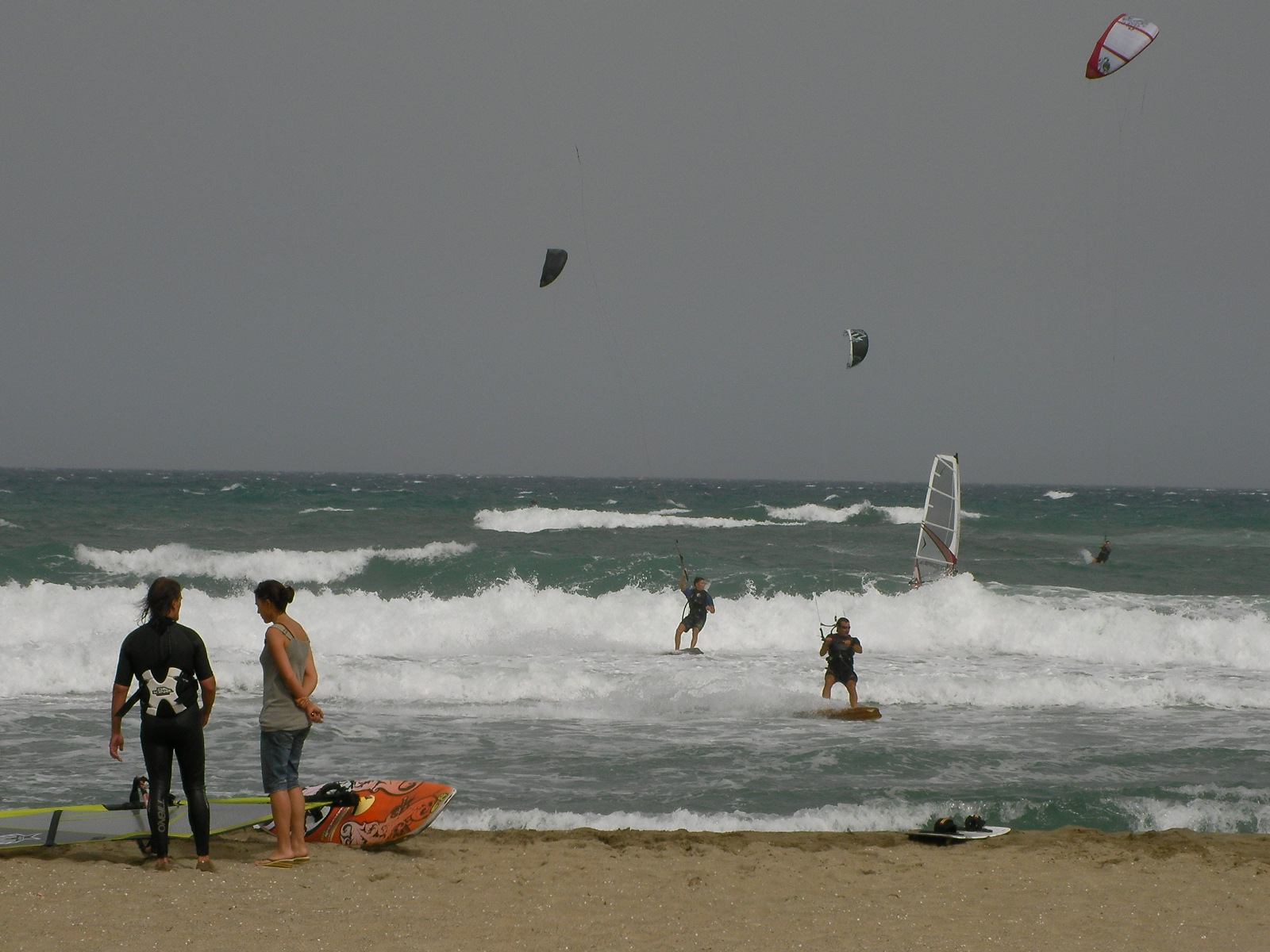 Après 2 jours de marin, la houle qui continue de dérouler sur les spots leucatois avait rendez-vous en fin d’après-midi avec la tramontane. Ce jeudi s’est donc terminé par une petite renverse assez technique en raison du plan d’eau chahuté et d’une tramontane irrégulière tant en direction qu’en force. Progressivement les choses vont se caler un peu histoire de laisser les chauds du surf se régaler entre les coussoules et la Franqui village avant que le vent ne retombe complètement. Ci-dessous, les quasi premiers sur le spot: Marco et Clément et Jeff.