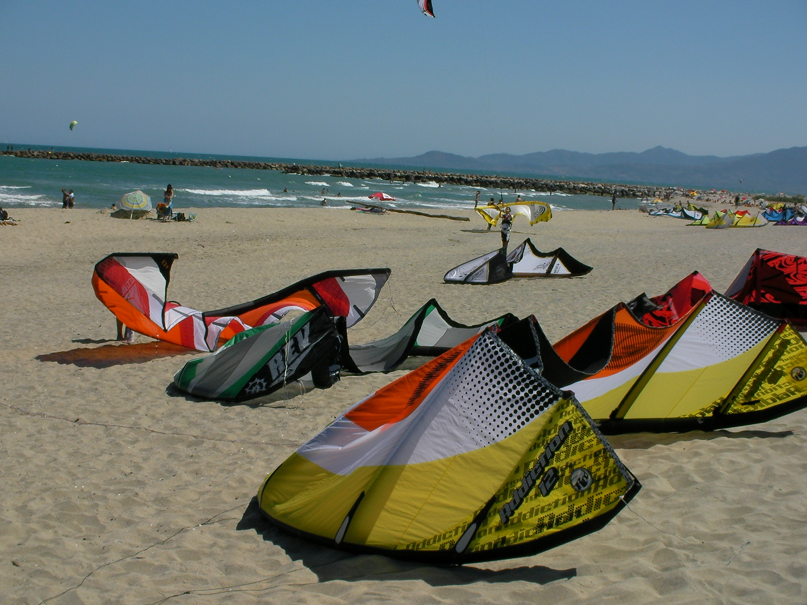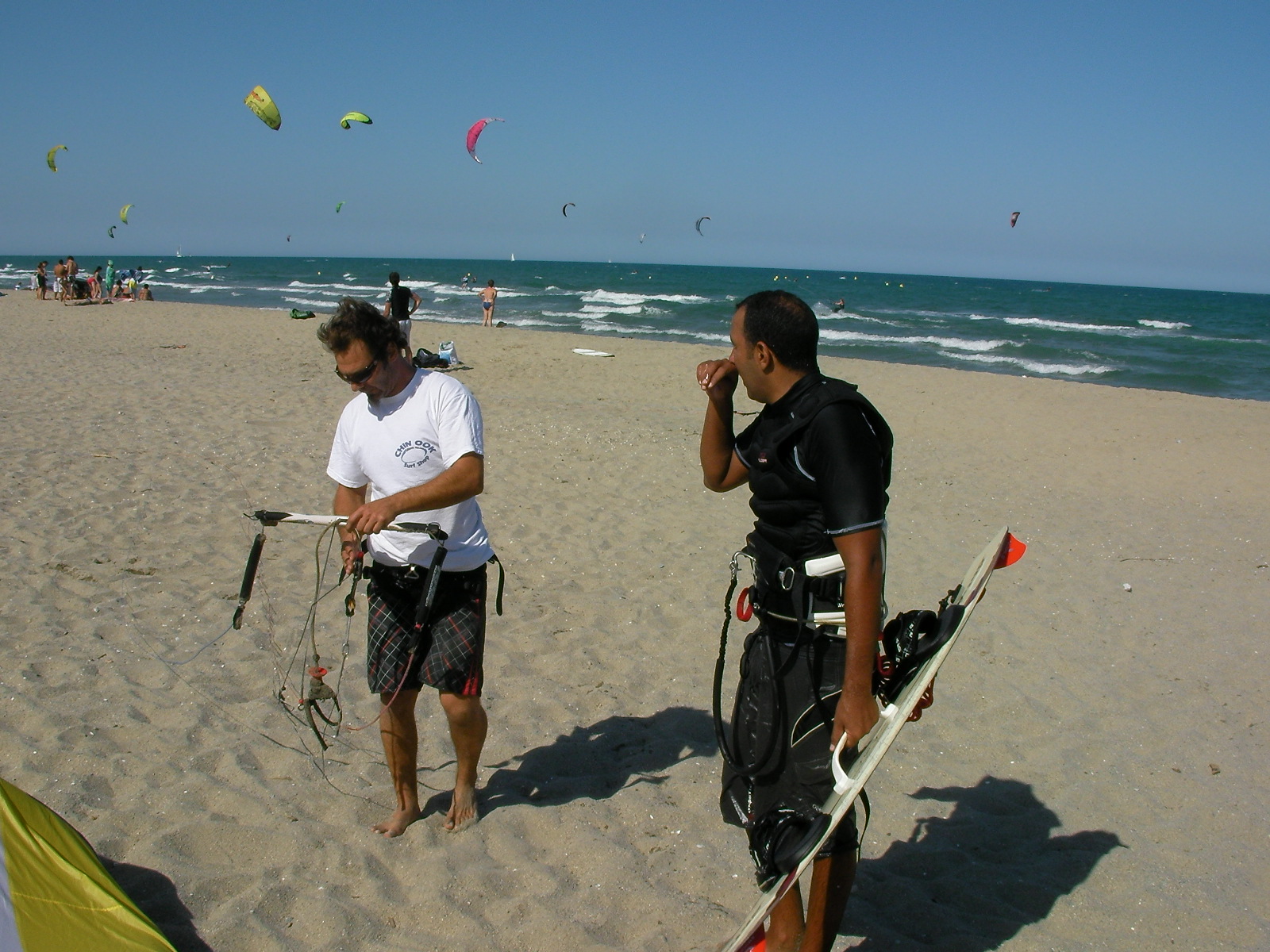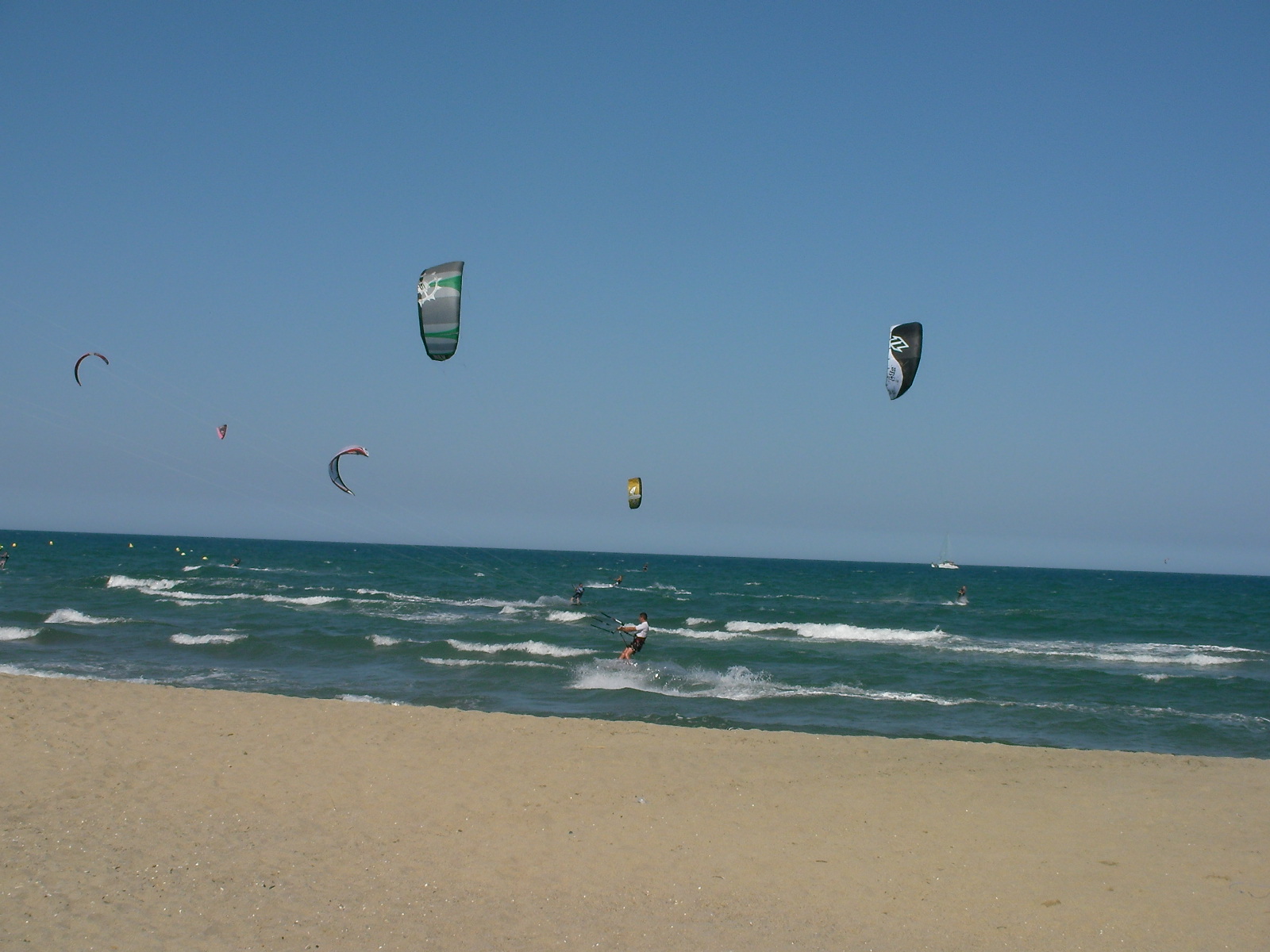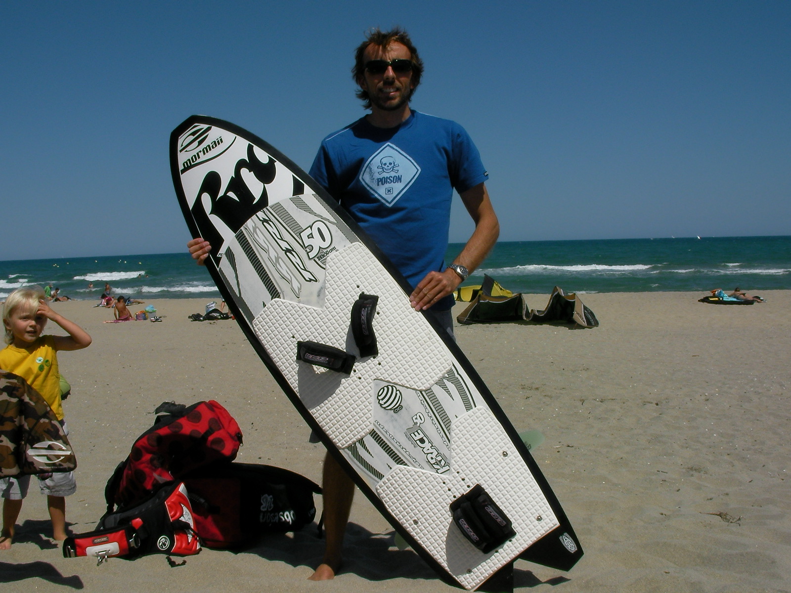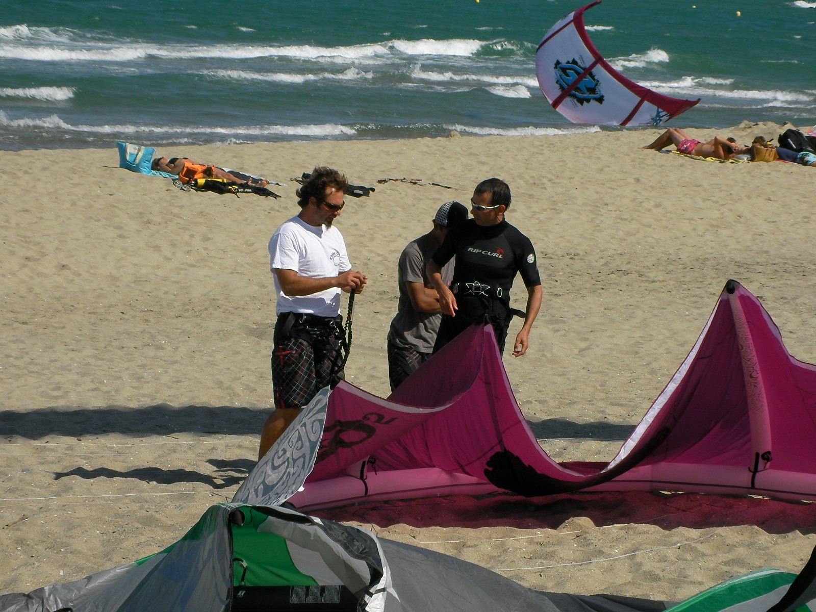 Les conditions ont une fois de plus été très favorables pour cette deuxième session de tests de l’été. Après le thermique de La Franqui, c’est à Canet Sud que les conditions étaient présentes ce dimanche puisqu’une brise d’Est/Sud-Est à 10/15 nds est venue soutenir à nouveau l’équipe de Chinook. Suivant les gabarits, il a donc été possible de tester entre 9 et 13 m2, le tout sur une dizaine de boards différentes. Antoine, Jef et Thierry ont eu la surprise d’avoir un renfort de dernière minute en la personne d’Eddy Vanbaelinghem, l’importateur RRD, venu avec, dans sa hotte, le proto ayant été validé pour produire la K-Race 2010 de série. Une board de course racing qui arrivait sur le spot de façon idéale puisque les conditions ont permis de révéler les capacités impressionnantes de la machine en matière de vitesse et de cap dans le vent light. Du test donc, des échanges mais aussi des retours sur les gammes 2009 qui devraient être suivis d’autres sessions dans les semaines qui viennent. A suivre…