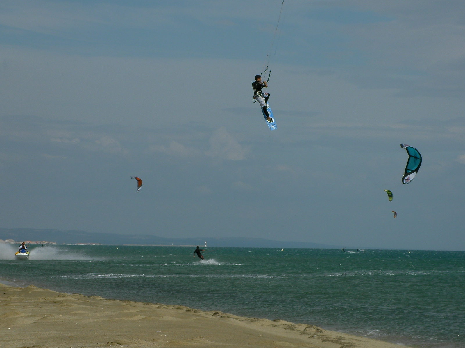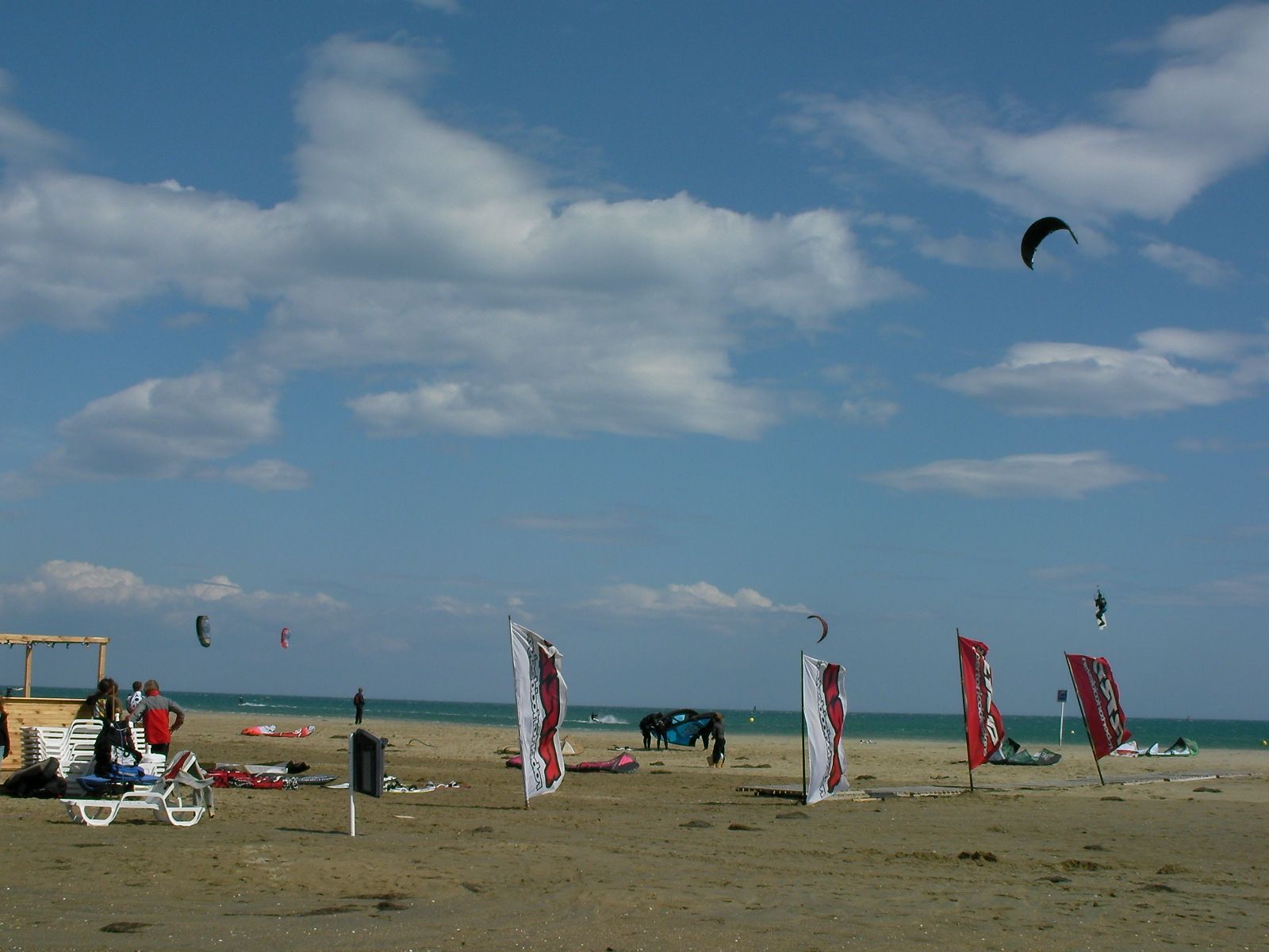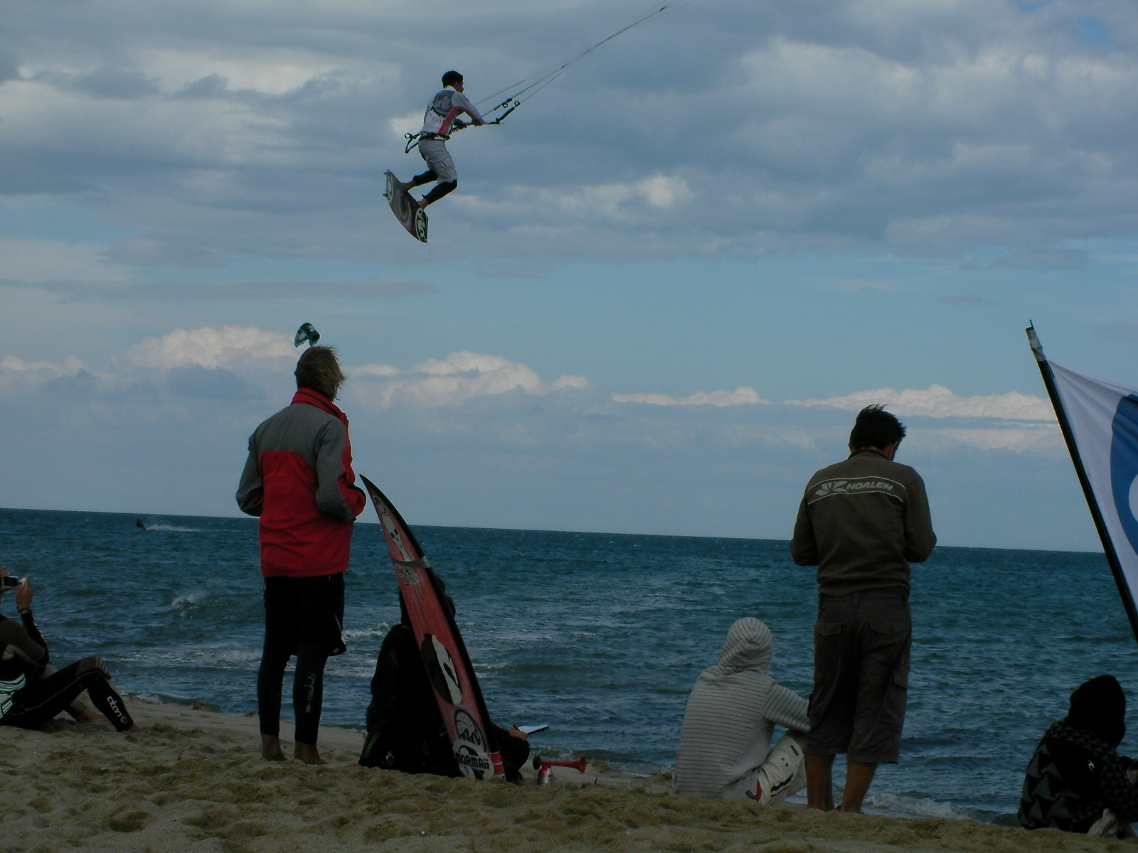 Comme redouté hier, les prévisions météo de ce dimanche étaient exactes. Dès le milieu de matinée, la tramontane forte et variable en direction balaie le spot de kite des coussoules, rendant la compétition de race difficile. Décision est donc prise de ne pas naviguer sur les boards directionnelles délicates à gérer et très sollicitantes dans de telles conditions de vent et de clapot. La journée est ainsi orientée sur une conviviale hang time et le classement K-race est gelé sur les résultats d’hier (classement publié très prochainement). Grâce à l’appoint des premières ailes RRD 2010 du shop, les 7 m2 Obsession sont gréées, rejoignant les 9 Addiction, et les premières boards Poison LTD 2010 servent de support pour des tableaux éliminatoires de sauts en 10 minutes 1 contre 1. En attendant les résultats officiels de ce week-end venté, voici quelques photos prises aujourd’hui.