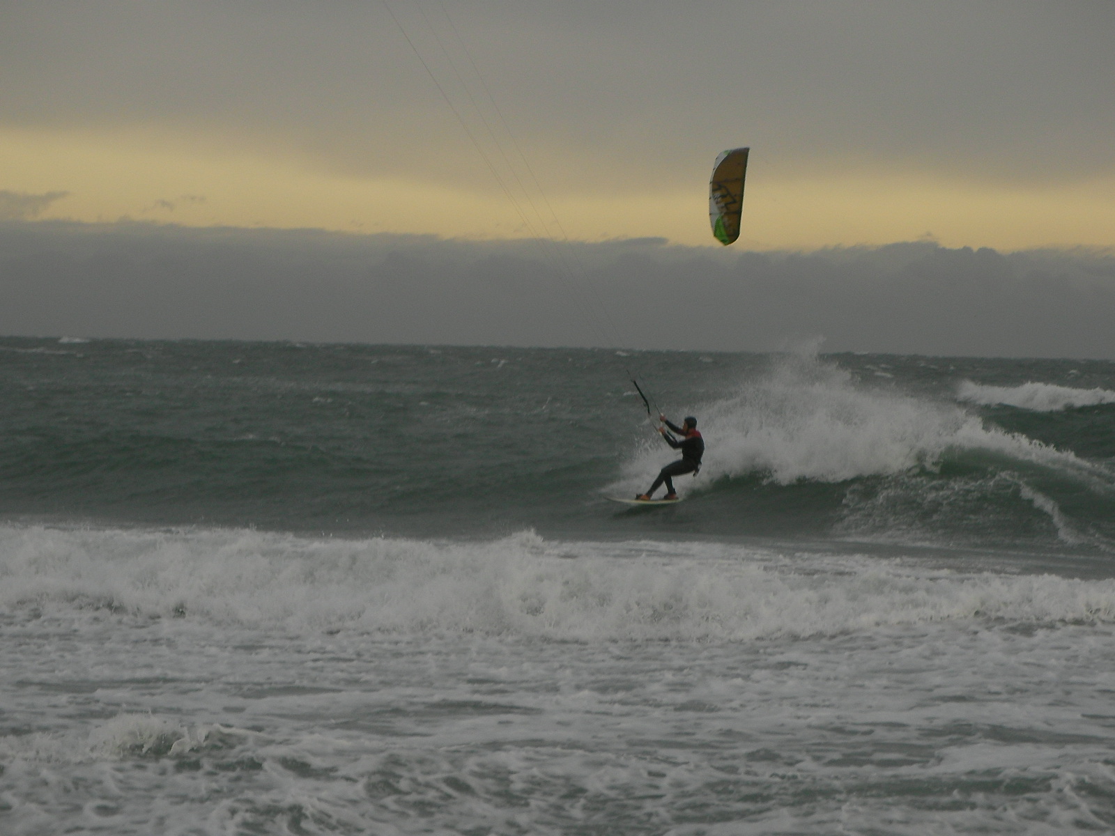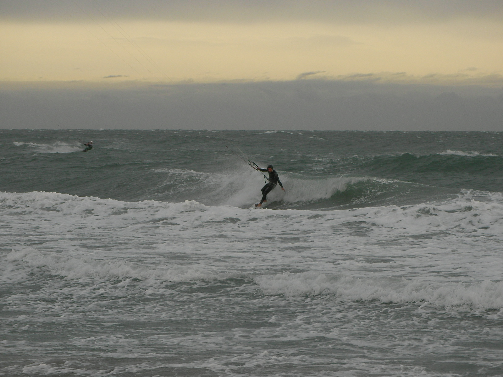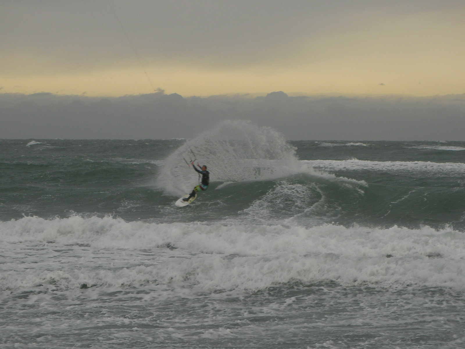 Une semaine qui commence avec un gros coup de Sud bien gras et froid. Les prévisions ont été revues à la hausse dans la journée d’hier et ne se sont pas trompées puisque des pointes à 133 km/h ont été enregistrées au sémaphore de Leucate… Une fois le flux stabilisé, les 3,7 m² en planche et les 5 m² en kite ont pris possession du spot à Leucate plage. Les habitués ont alors pu profiter d’un bon deux mètres dans les séries sans a priori trop souffrir du froid qui restait vif malgré le flux de marin. A noter que la semaine devrait être très perturbée avec du Sud-Est en prévision les jours prochains. A suivre…
