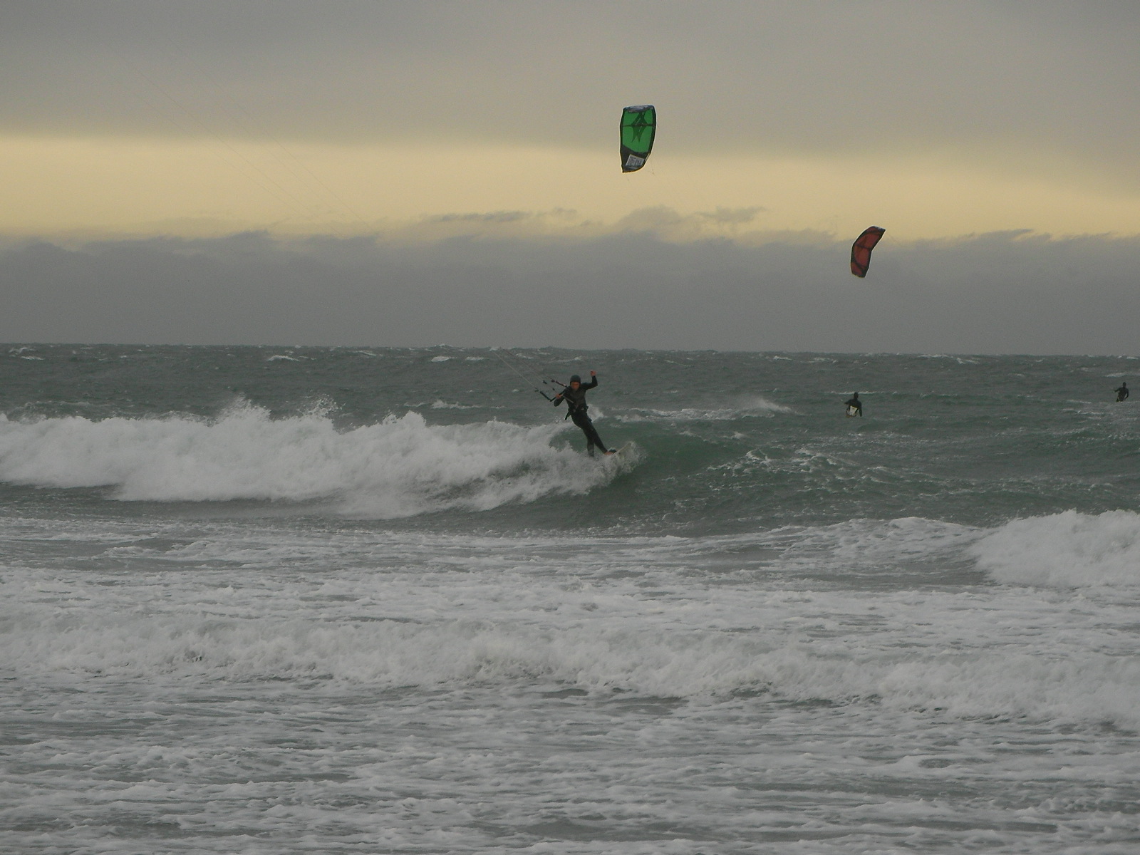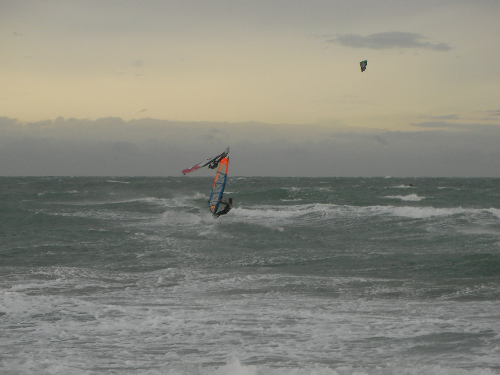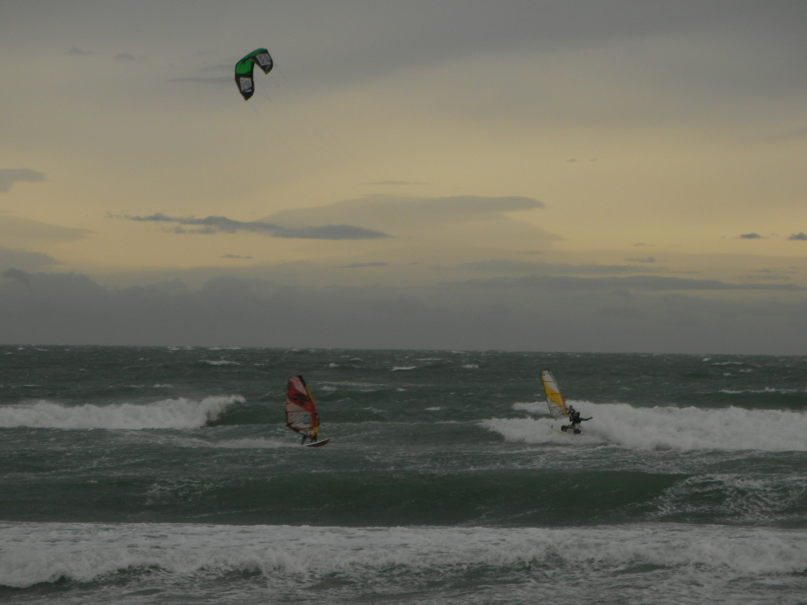 Une semaine qui commence avec un gros coup de Sud bien gras et froid. Les prévisions ont été revues à la hausse dans la journée d’hier et ne se sont pas trompées puisque des pointes à 133 km/h ont été enregistrées au sémaphore de Leucate… Une fois le flux stabilisé, les 3,7 m² en planche et les 5 m² en kite ont pris possession du spot à Leucate plage. Les habitués ont alors pu profiter d’un bon deux mètres dans les séries sans a priori trop souffrir du froid qui restait vif malgré le flux de marin. A noter que la semaine devrait être très perturbée avec du Sud-Est en prévision les jours prochains. A suivre…