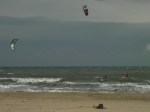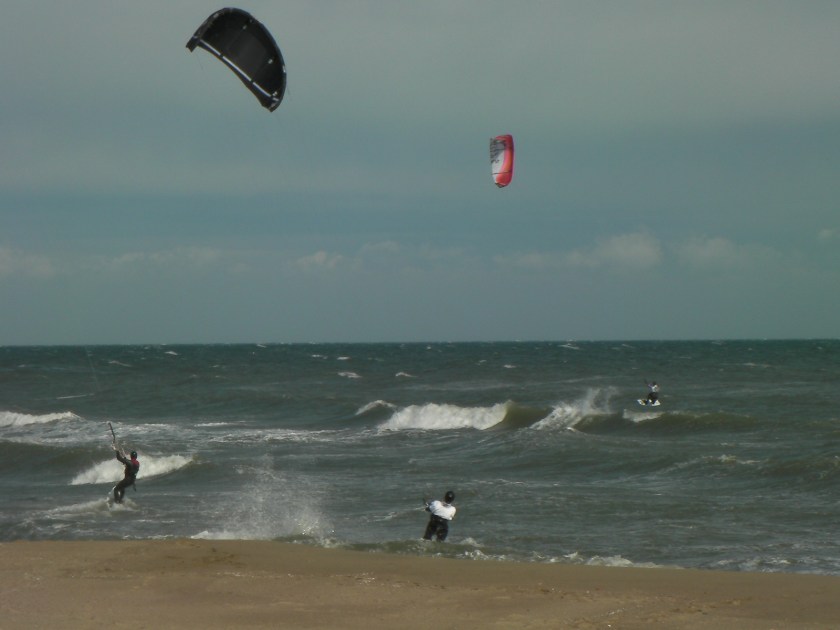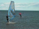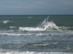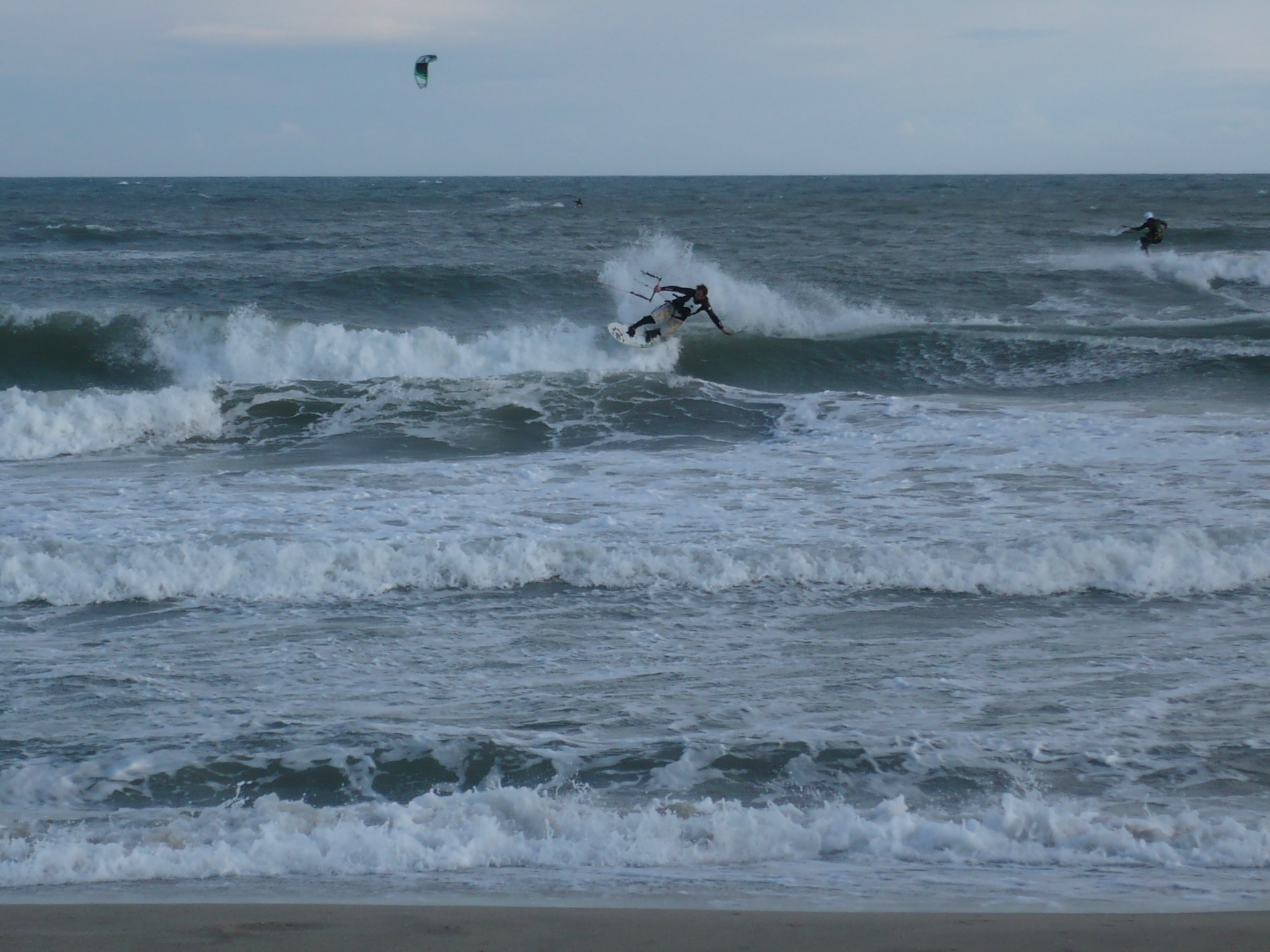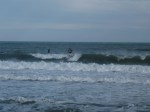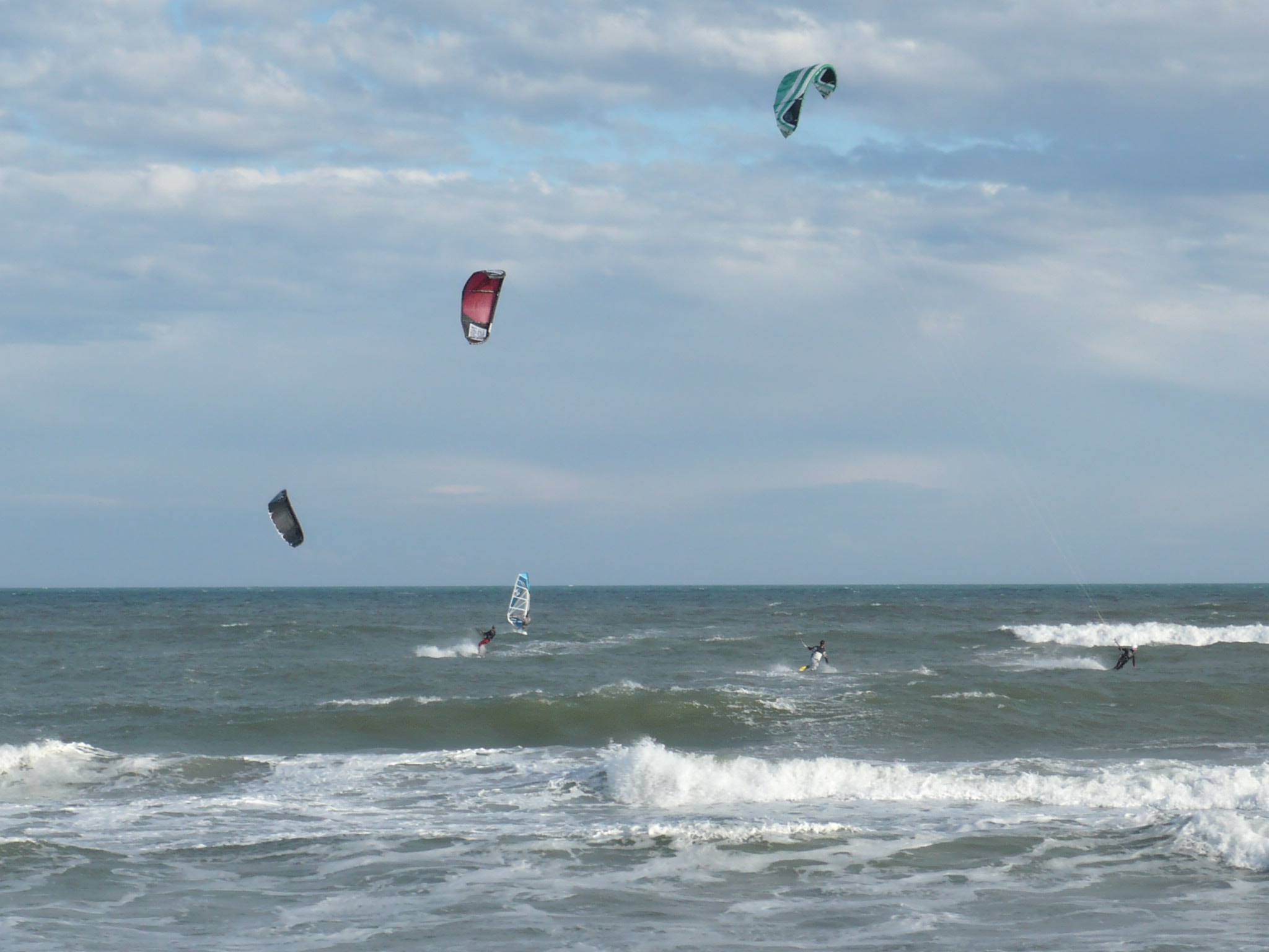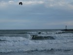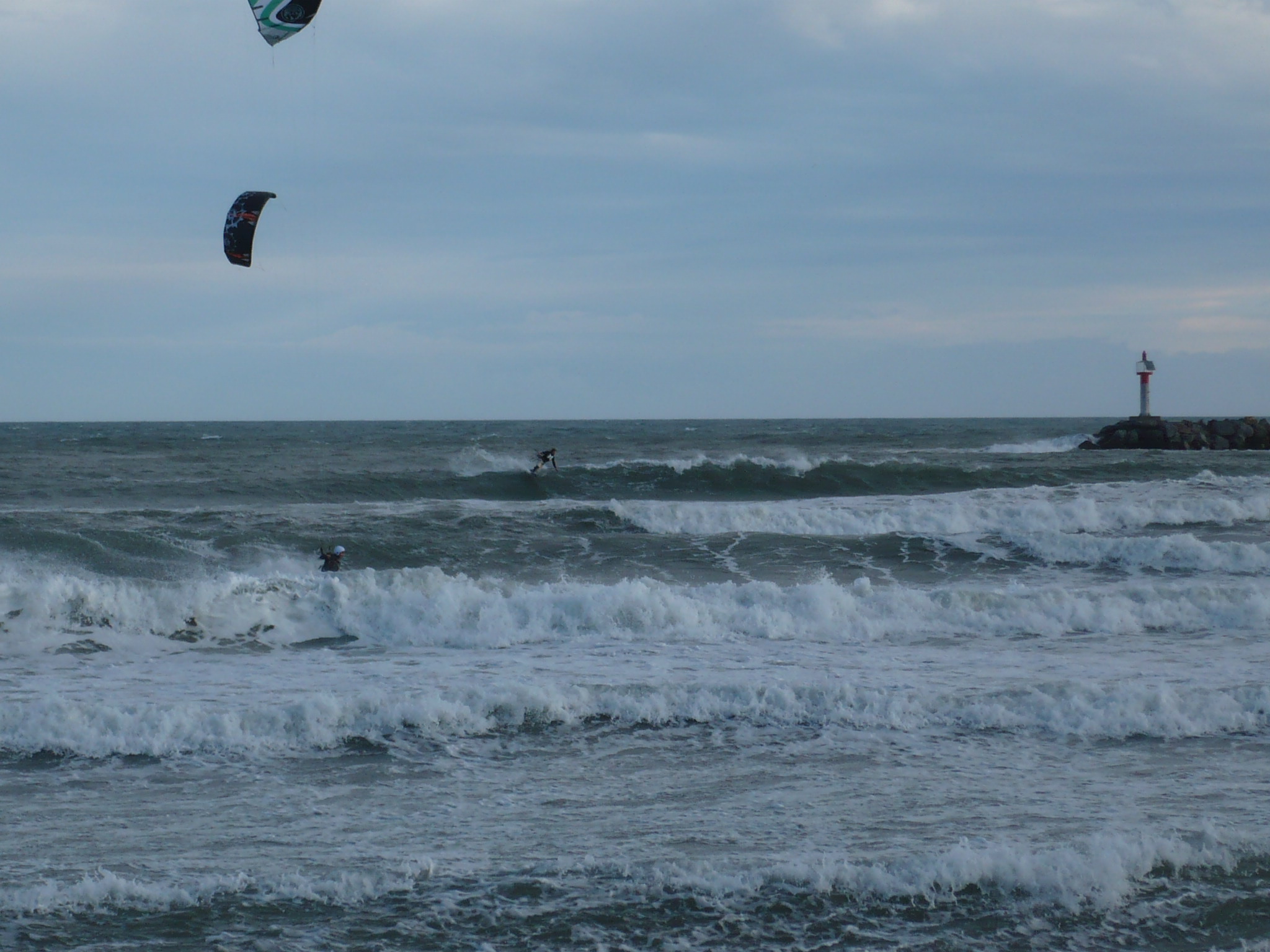 Nous sommes arrivés à 13h30 et il n’y avait alors personne. Mais au fil de l’après midi, les bodyboarders sont venus, ainsi que les surfers, windsurfers, kayakistes de vagues, canoës, etc. . Le plan d’eau était animé par tout ce petit monde qui sortait du travail ou de l’école….Si ça c’est pas un mode de vie extraordinaire que de pouvoir profiter, tous les jours si tu as envie, de la mer et des vagues car il faut savoir que le climat ici est toujours le même, à quelques degrés près…Donne le bonjour à nos amis et parents ,on rentre pas…