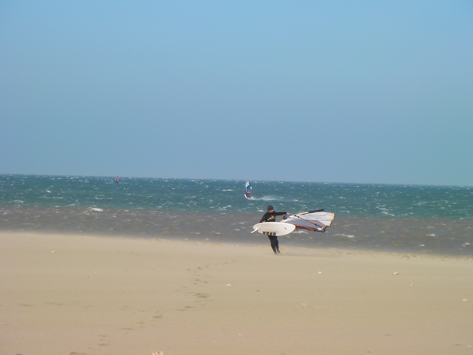 Peu de monde sur l’eau ce dimanche, certainement en raison des conditions plus fortes qu’hier car les windsurfers venus sur le spot de la Franqui se sont frottés à un courant de tram’ violent. Plus de 45 nds dans les embruns, des températures en hausse théorique mais rafraîchies par les rafales, bref, pas vraiment une session à naviguer détendu du wish.