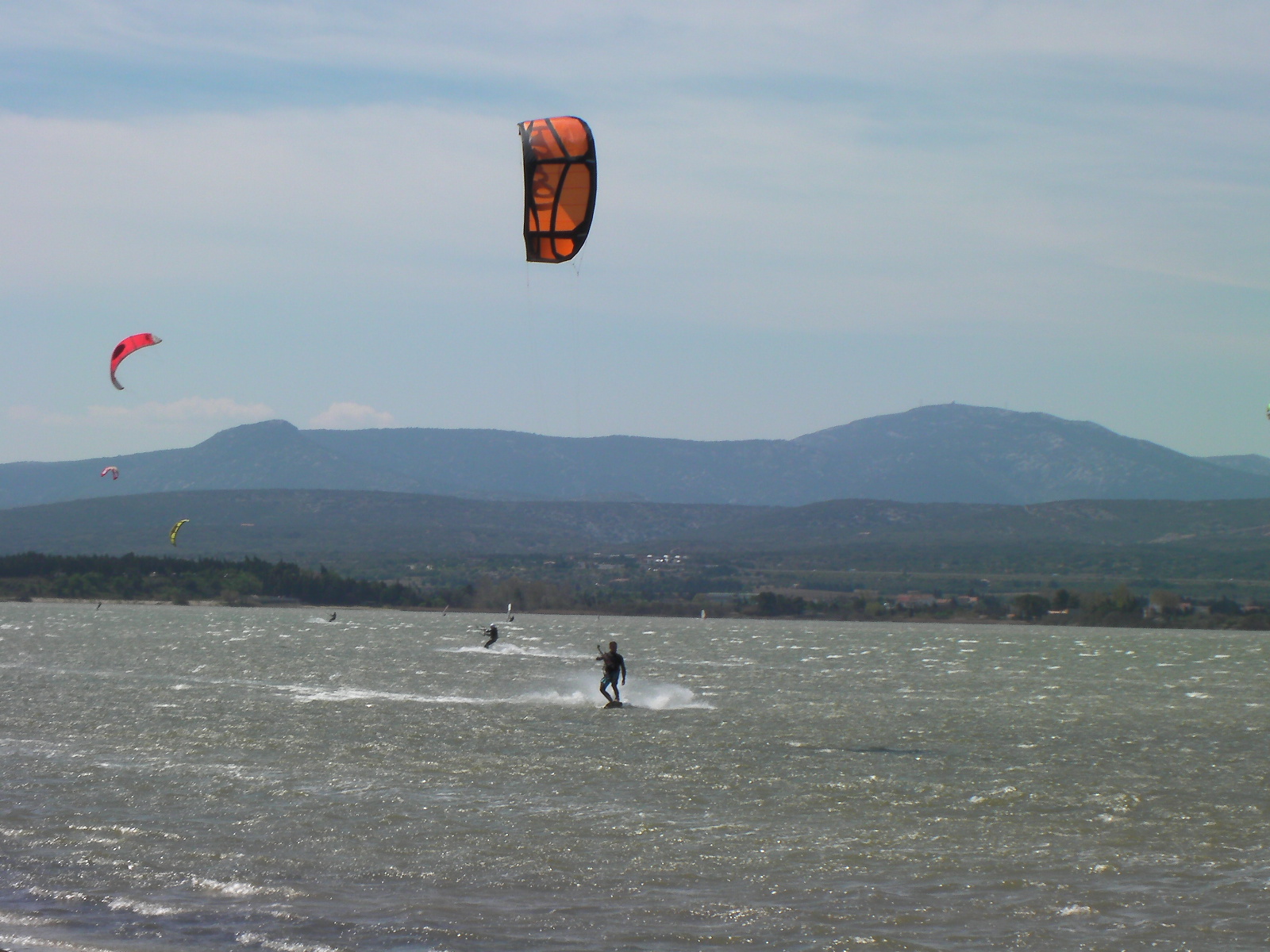 La session de test kite ayant été prévue à l’avance, il a bien fallu se rendre à l’évidence que le choix du spot devait être revu en raison d’un changement de météo pour la journée de dimanche. En début de matinée, le choix est donc fait : ce sera La Palme et son étang bien connu des kiters. Bonne pioche ! 30/35 nds de tramontane vont agiter les drapeaux et secouer les 5/7 m² une bonne partie de la journée avant de céder la place à un flux d’Est qui s’est invité brutalement. Le Nord-Ouest aura permis aux intéressés de tester le matériel RRD ( Religion, Passion et Obsession), Airush (Varial, Lithium, Générator + skimboard), Best kiteboarding (Bularoo, Kahoona + boards Balance) ainsi que Slingshot (RPM, Key + boards). Prochainement, d’autres tests seront mis en place sur les spots audois et catalans. A suivre…