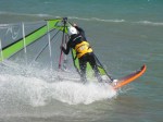 Mercredi 5 mai, lendemain de « déluge » et jour de grosse tram’, les windsurfers du Roussillon sont tombés sur un os: même en descendant sur Saint Cyprien, le vent était vraiment trop fort. Décision fut donc prise de se replier encore plus bas, sur la côte rocheuse, histoire de trouver un spot avec des conditions acceptables en 4,2/4,7m². Fred Bonet était là pour profiter d’une bonne heure et demi de session avant que le vent ne décline.