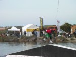 La première journée de la 4ième édition du wake and beach vient de se terminer, tout du moins la partie ensoleillée puisque l’organisation va continuer de faire rider les wakeboarders de nuit sous les projecteurs. Du beau et gros ride engagé tout au long de l’après-midi avec les amateurs, pros et juniors motivés par le public venu sur le site du Kum Wake Park à Barcarès, à côté du téléski nautique. Le festival continue demain dimanche avec la suite de la compétition mais aussi les nombreuses animations et baptêmes multiglisses sur le site.