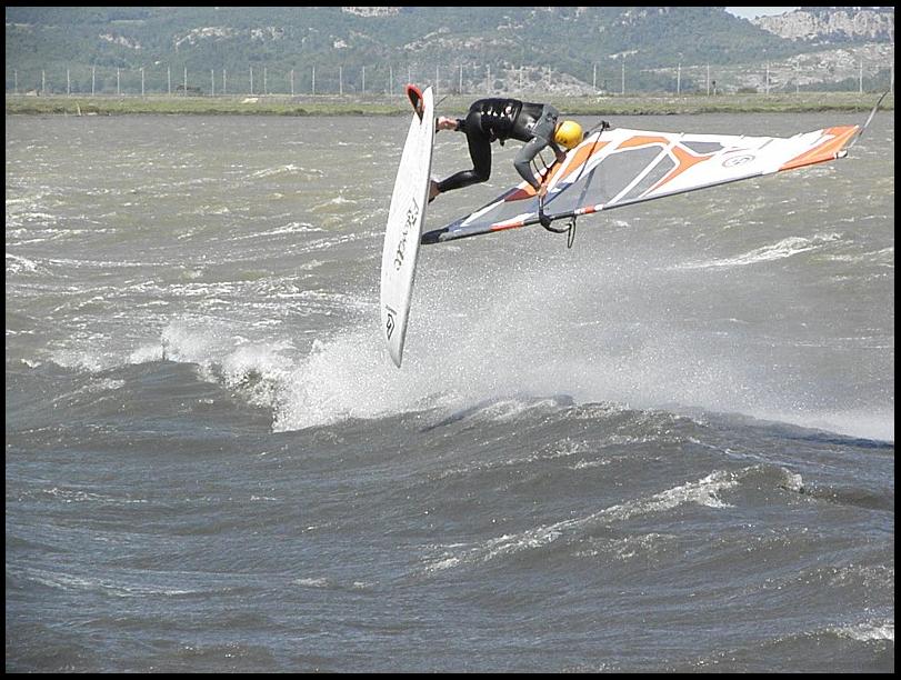 D’ordinaire connu comme un spot de répli en cas de Nord-Ouest excessif, le spot de Pals (Espagne) réserve parfois des surprises. Ce fut le cas hier dimanche puisque Fred Bonet en arrivant sur les lieux, n’a pu que constater la force du vent quasi identique à celle des spots français. 50 voire 55 nds dans les rafales, des conditions rudes où les 3,7 m² étaient indispensables pour ne pas (trop) se faire malmener.