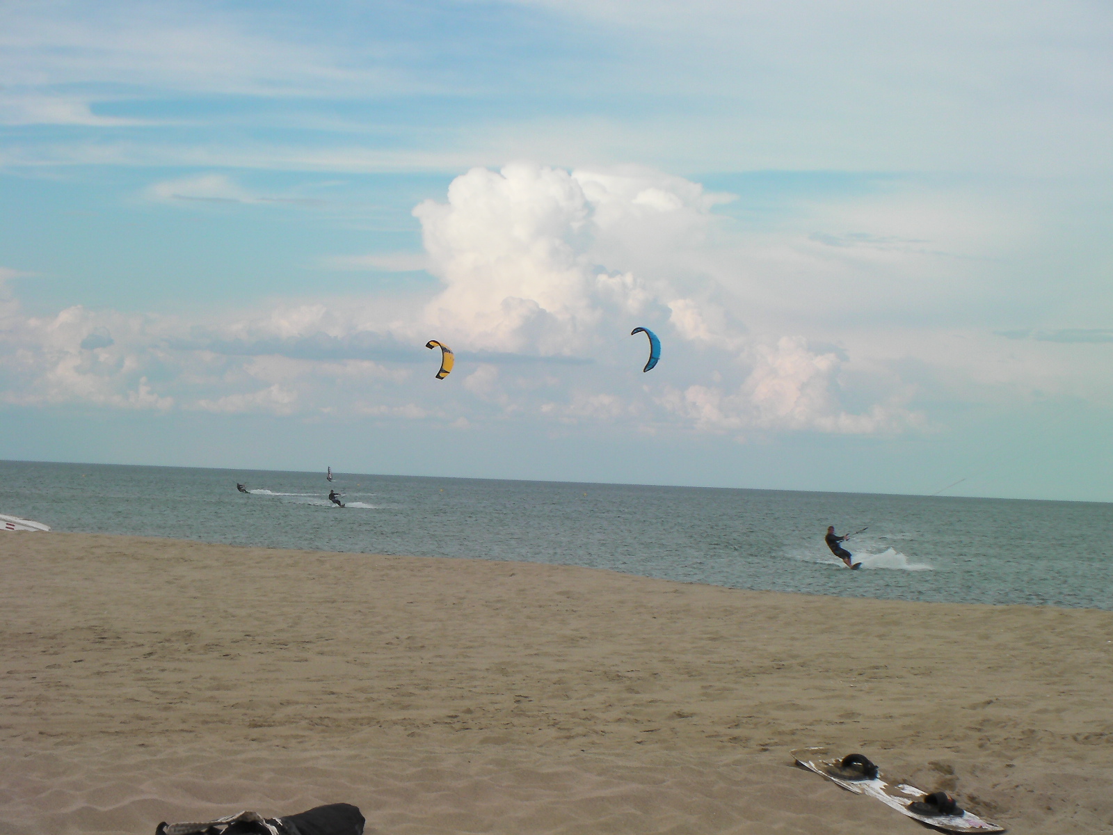 Malgré les gros nuages noirs qui bourgeonnaient sur le narbonnais et les P.O., la tramontane s’est fait une petite place sur Leucate ce dimanche. Pas de quoi s’enflammer tant le soleil s’est fait discret mais cela a été suffisant pour une session tout en glisse dans 10/25 nds. Après un bon coup de vent en première partie d’après-midi, les choses sont devenues plus délicates et il fallait savoir jongler avec les déventes. Entre deux coups de mou, quelques furieux dont Henri, Jérem’, Julien et Ricko ont envoyé des sauts dans tous les sens sur la zone kite de la Payote des coussoules afin de préparer une semaine qui s’annonce ventée. A suivre…