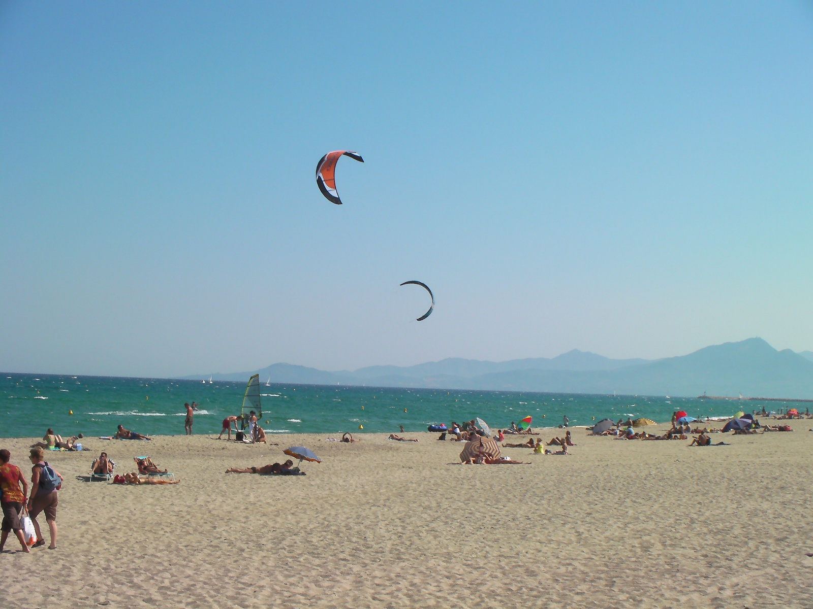 Le thermique à force 3/4 prévu ce dimanche sur les spots du Sud s’est transformé en un petit marin à 20 nds dans l’après-midi. Bonne pioche pour les très nombreux riders présents du côté de Canet, Saint Cyprien et Argelès où les grosses ailes et le matos de windsurf petit temps ont pu être troqué pour des 9 m² en kite et 5,5 m² en planche voire moins lorsque l’anémo s’est mis à grimper. C’était le cas pour Nico Rasta et moi-même puisque vous avons profité des conditions entre 15h et 20 h. Beaucoup de monde sur l’eau donc mais aussi sur les plages où le bronzage et la baignade étaient de rigueur tant la journée était estivale. Le début de la semaine qui arrive s’annonce venté car le marin devrait rentrer lundi et mardi après un mois d’août pauvre en Sud-Est. Une petite prière ne coûte rien…