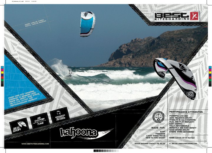 D’ici quelques petites semaines, la Bestkiteboarding Kahoona 2011 arrivera au shop. Tout en recevant des modifications sur lesquelles je vais revenir, la Kahoona reste l’aile au shape delta 4 lattes à ratio modéré ultra facile et rassurante de prise en mains, pour aider les débutants et envoyer sans y penser pour les progressions/confirmés. Réglages simples, confort, gros dépower et sécurité, la Best évolue donc en 2011 avec l’arrivée d’un nouveau spi plus résistant et rigide avec une technique améliorée de sérigraphie pour la tenue de la nouvelle déco. Le tout est également combiné à un nouveau dacron qui contribue lui aussi à plus de rigidité et de solidité pour une meilleure réactivité sur toute la gamme. Egalement modifié, le nouveau réglage des arrières A/B afin d’ajuster la pression en barre. Enfin, une taille supplémentaire fait son apparition (3,5 m²) pour les écoles et les petits gabarits amateurs de carton.