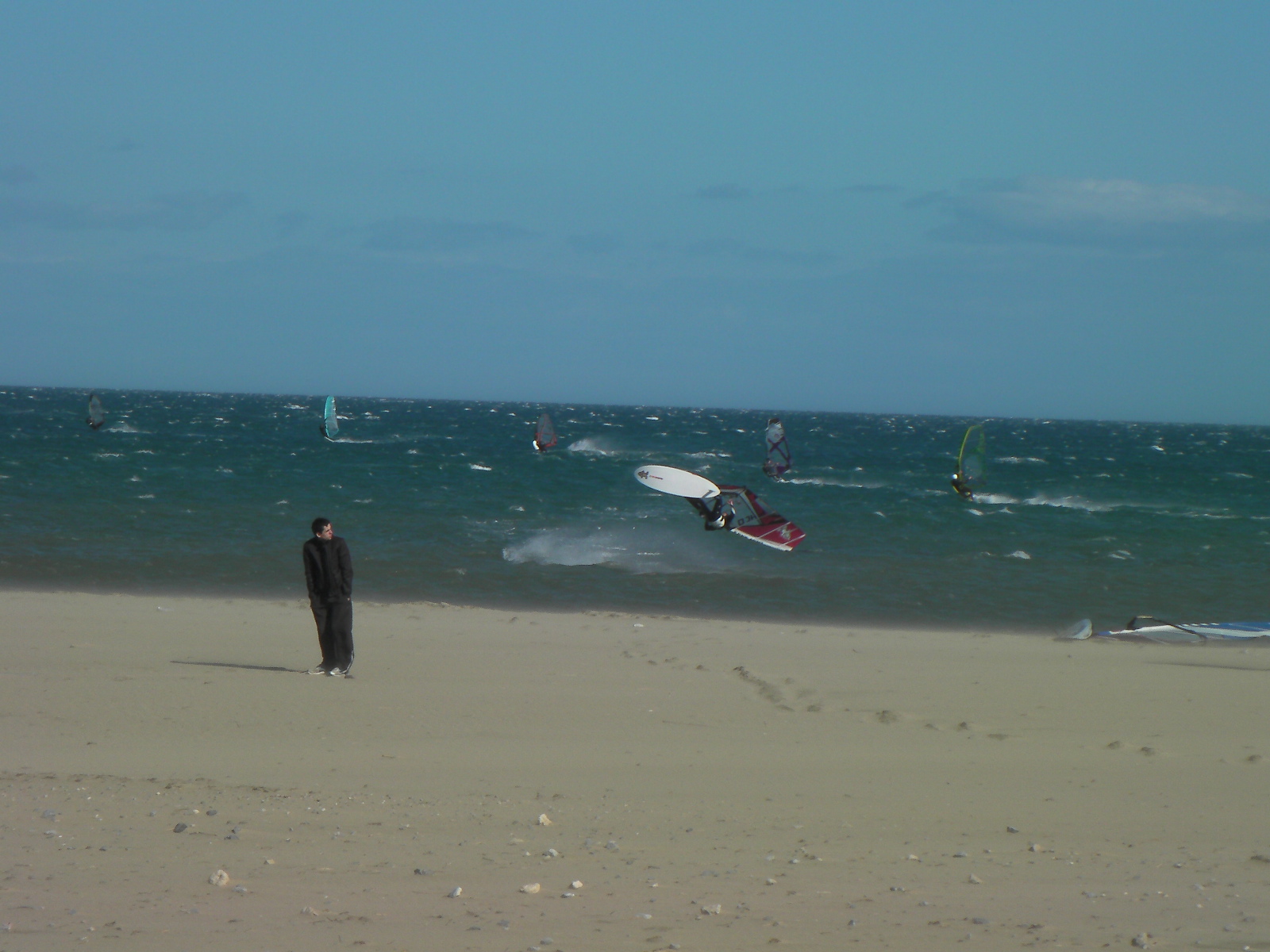 La tramontane bien puissante de ce dimanche aura permis à certains de reprendre la saison sur le spot de La Franqui tandis que d’autres continuent d’enchaîner les coups de vent depuis le début de l’année. D’abord très modérée puis franchement solide, la tram’ a fait sortir les 4 m² mais aussi les cagoules et autres bandeaux pour quelques uns. Pas de quoi grelotter heureusement, grâce à un franc soleil, mais le flux sec avait tendance à refroidir les amateurs de pauses prolongées et les spectateurs. La semaine qui s’annonce devrait rester sous le signe de la tramontane avec des températures globalement stables. Sessions en perspective ?