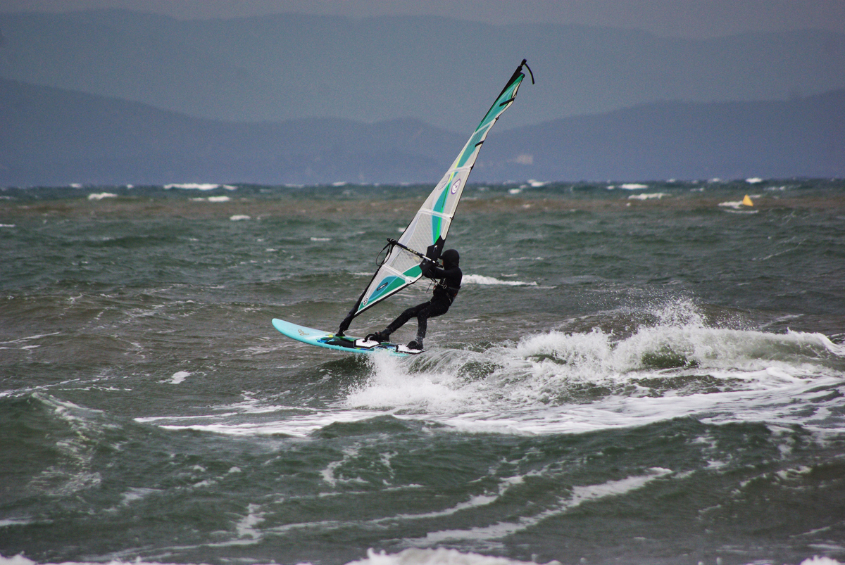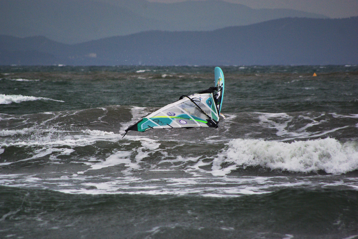 Session de porcs, de vilains ou de gourmets (au choix) ce mercredi à la Franqui puisque les vagues VRAIMENT solides se sont conjuguées à une tramontane aux alentours de 40 nds. Tout cela a donné une session rare en side off magnifique avec plus de 2 mètres de creux où chaque erreur de placement se payait cher. Très peu de monde à l’eau 3 planchistes dont Roland et autant de kiters dont Jeff pour ce moment qui sonne comme une des plus belles sessions 2011…pour l’instant.